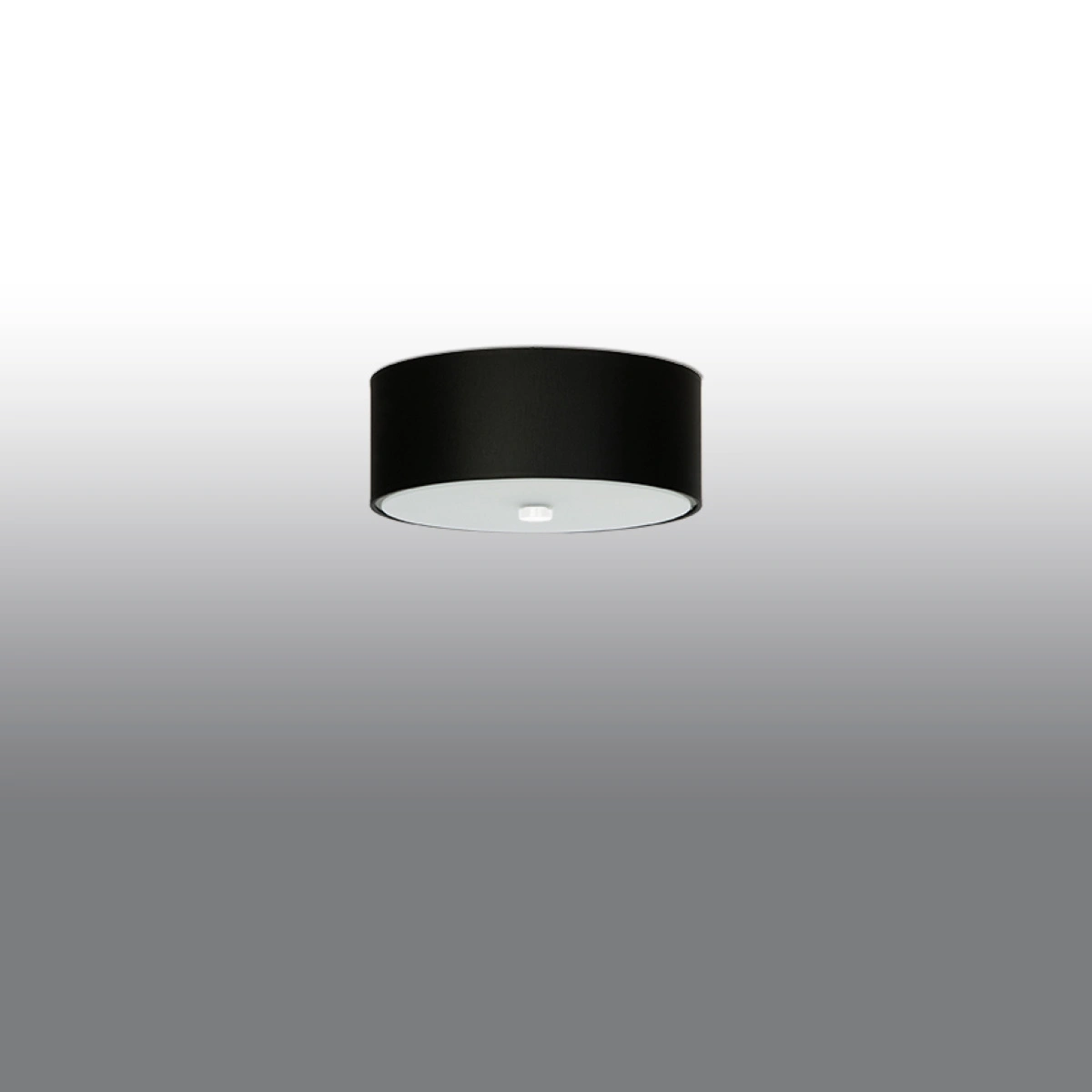 Plafon sufitowy Skala 30 czarny marki Sollux Lighting to nowoczesna, okrągła lampa o średnicy 30 cm i wysokości 22 cm, która doskonale sprawdzi się jako główne źródło światła w salonie, kuchni lub sypialni. Wykonany z połączenia trwałego metalu, eleganckiego szkła i subtelnej tkaniny, plafon łączy w sobie wytrzymałość z estetyką, zapewniając jednocześnie miejsce na trzy żarówki E27 o mocy do 60W każda (żarówki do zakupu osobno). Czarna kolorystyka i minimalistyczny kształt sprawiają, że to idealny wybór do wnętrz urządzonych w nowoczesnym stylu.
