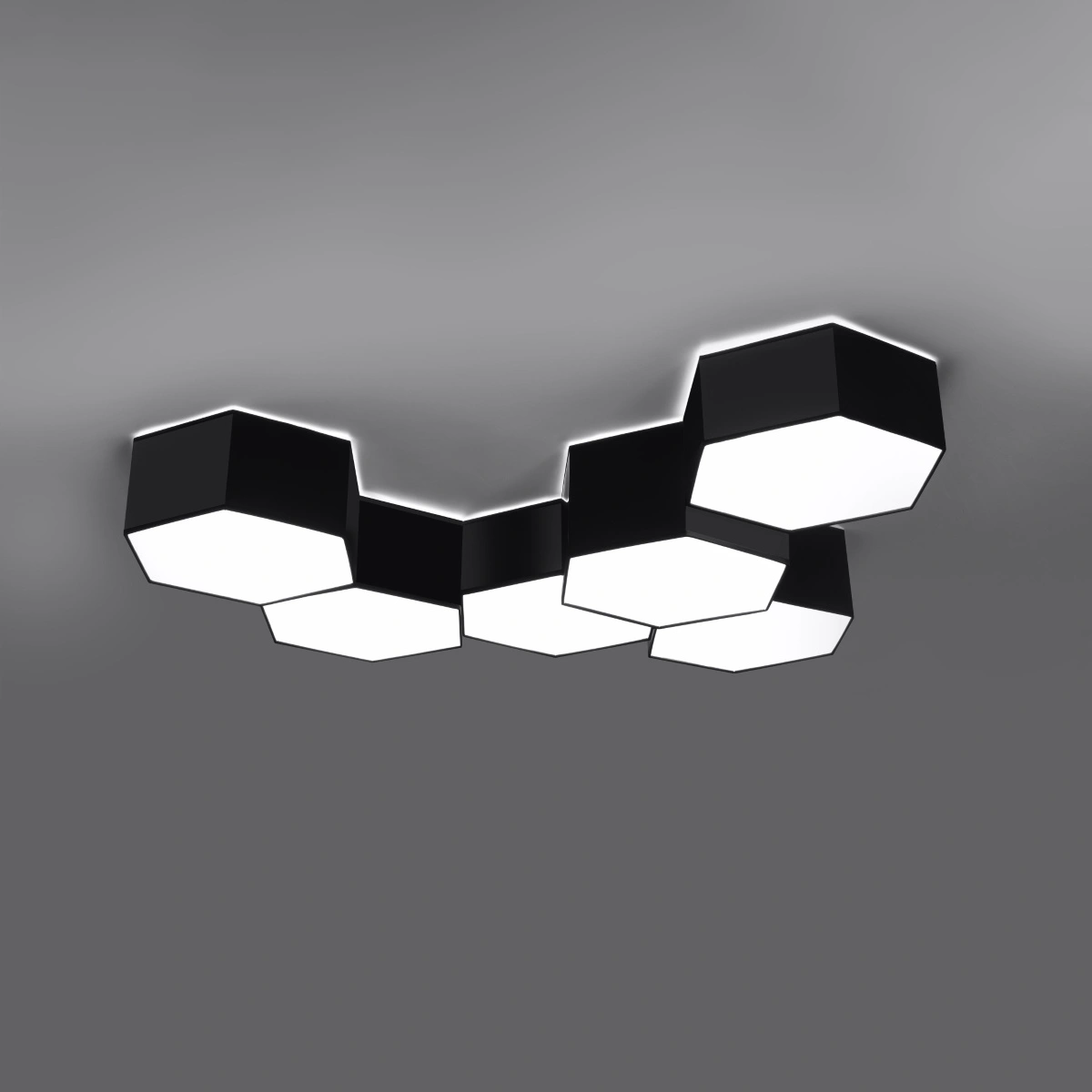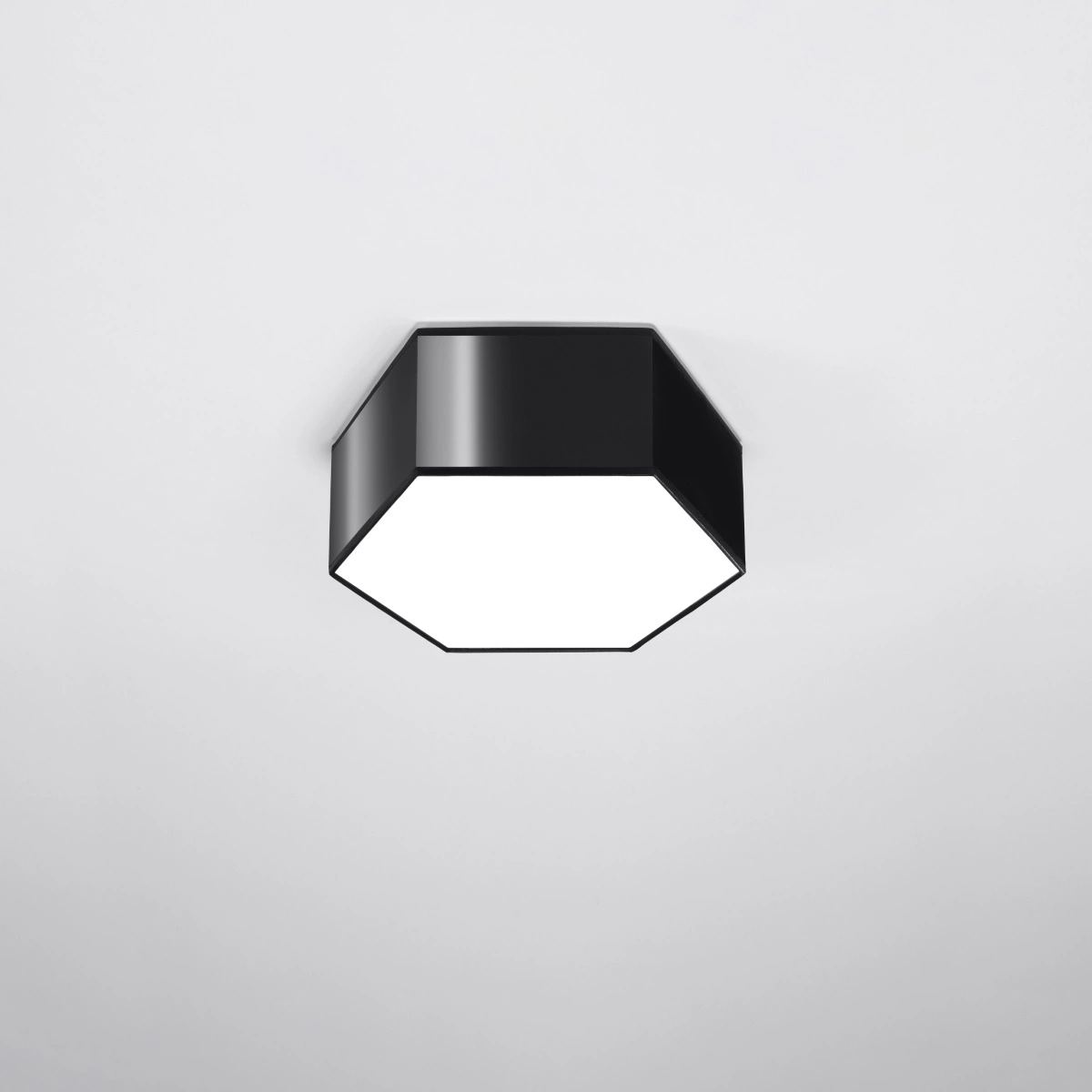 - nowoczesny plafon heksagonalny – przyciąga uwagę geometrycznym designem