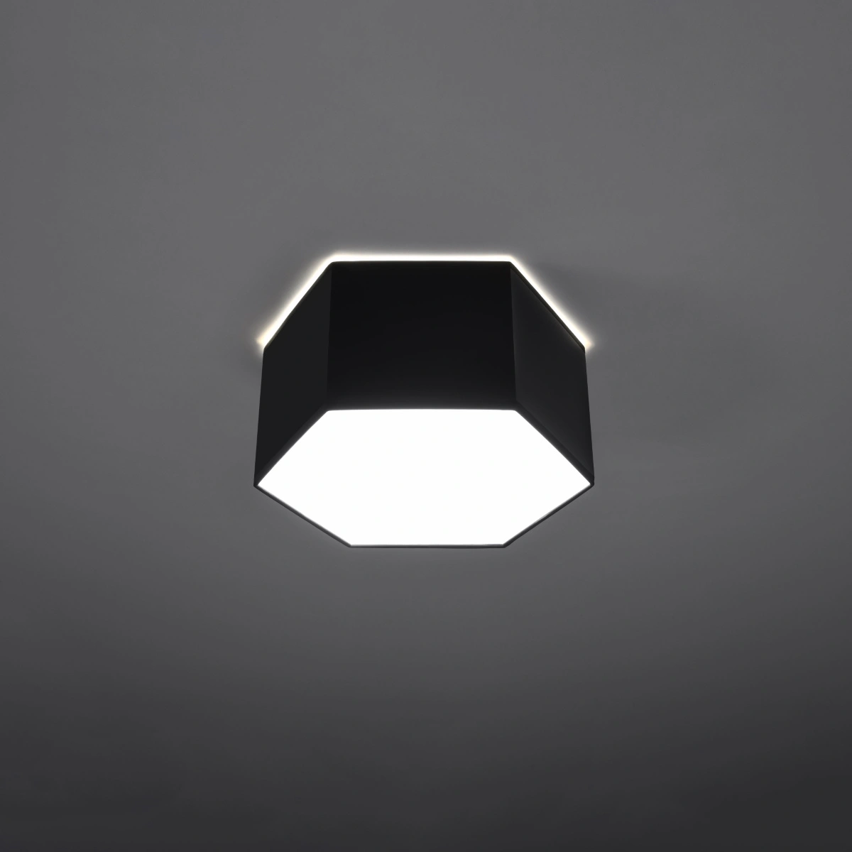 Plafon sufitowy Sunde marki Sollux to nowoczesna propozycja dla miłośników wyjątkowego designu i funkcjonalności. Wykonany z trwałego tworzywa sztucznego w kolorze czarnym, charakteryzuje się oryginalnym heksagonalnym kształtem i wymiarami 26,5 × 30,5 × 15,5 cm. Dzięki dwóm źródłom światła z oprawą E27, plafon doskonale sprawdzi się w roli oświetlenia głównego zarówno w salonie, kuchni, jak i sypialni, oferując równomierne, rozproszone światło i nowoczesny akcent w aranżacji wnętrza.