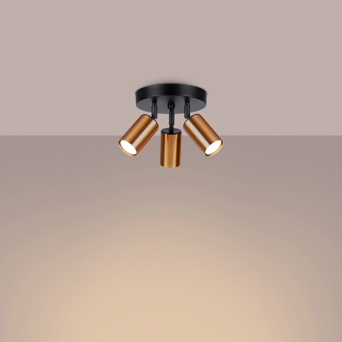Plafon sufitowy WINX 3P marki SOLLUX LIGHTING to nowoczesne oświetlenie wykonane ze stali w eleganckim czarnym kolorze z miedzianymi akcentami. Model o wysokości 20 cm i szerokości 19,5 cm wyposażony jest w trzy oprawy na żarówki GU10, co pozwala skutecznie doświetlić zarówno salon, jak i sypialnię czy jadalnię. Wyrazista, geometryczna forma sprawia, że plafon WINX 3P świetnie wpisuje się w aranżacje nowoczesne i industrialne, a solidny materiał gwarantuje trwałość na lata.
