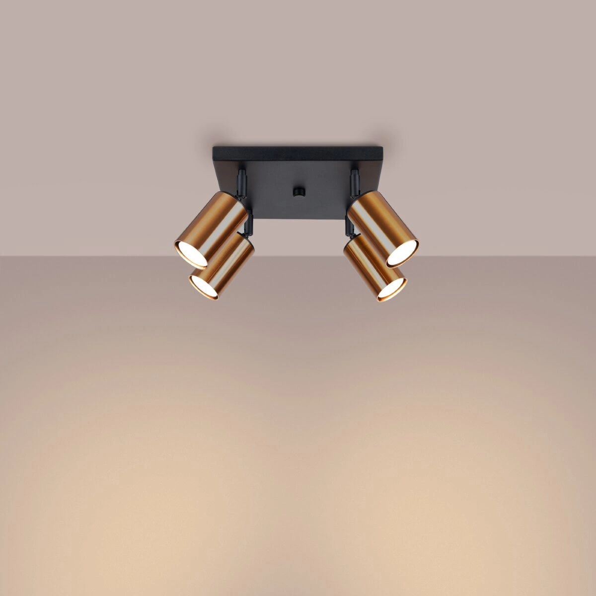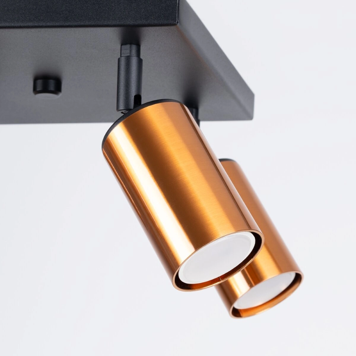 Plafon WINX 4 czarny/miedź wyposażony jest w oprawę żarówki typu GU10, co gwarantuje trwałość i bezpieczeństwo użytkowania. Moc żarówki wynosi 10W, co zapewnia optymalne oświetlenie pomieszczenia. Dzięki temu plafon idealnie sprawdzi się w salonie, sypialni, jadalni, a także w pokoju młodzieżowym czy poczekalni.