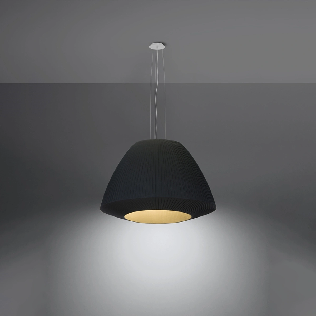 Żyrandol BELLA 60 czarny marki SOLLUX LIGHTING to elegancka, nowoczesna lampa sufitowa o średnicy 60 cm i wysokości 138 cm, wyposażona w trzy punkty świetlne. Wykonany z trwałej stali, szkła i tkaniny, zachwyca subtelnym, matowym wykończeniem w głębokiej czerni. Ten żyrandol do salonu i jadalni doskonale łączy minimalistyczny design z funkcjonalnością, oferując równomierne oświetlenie nawet większych pomieszczeń.