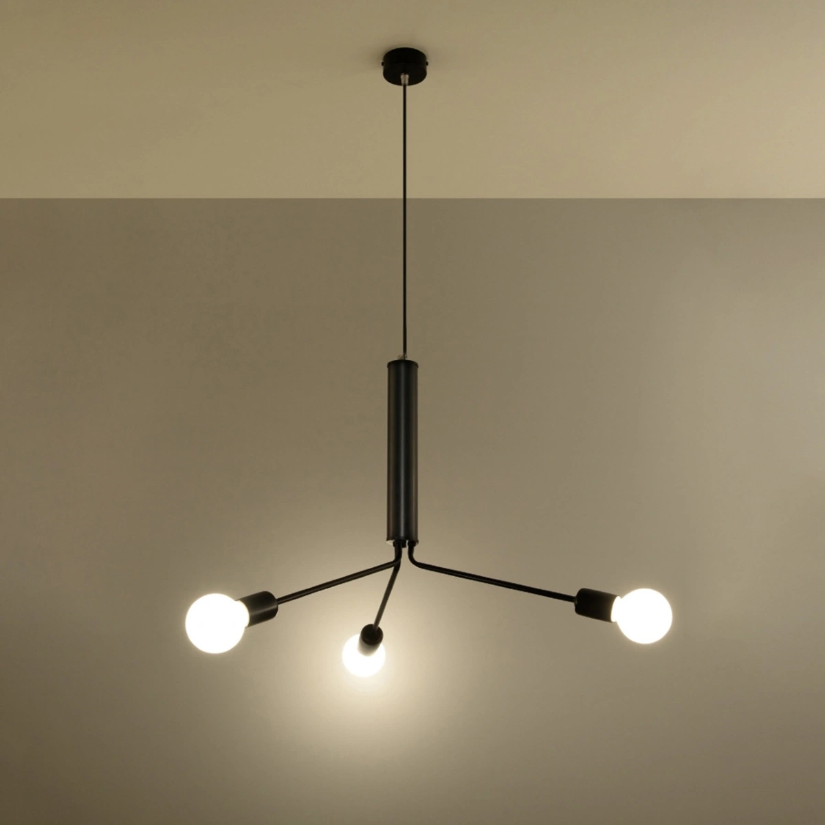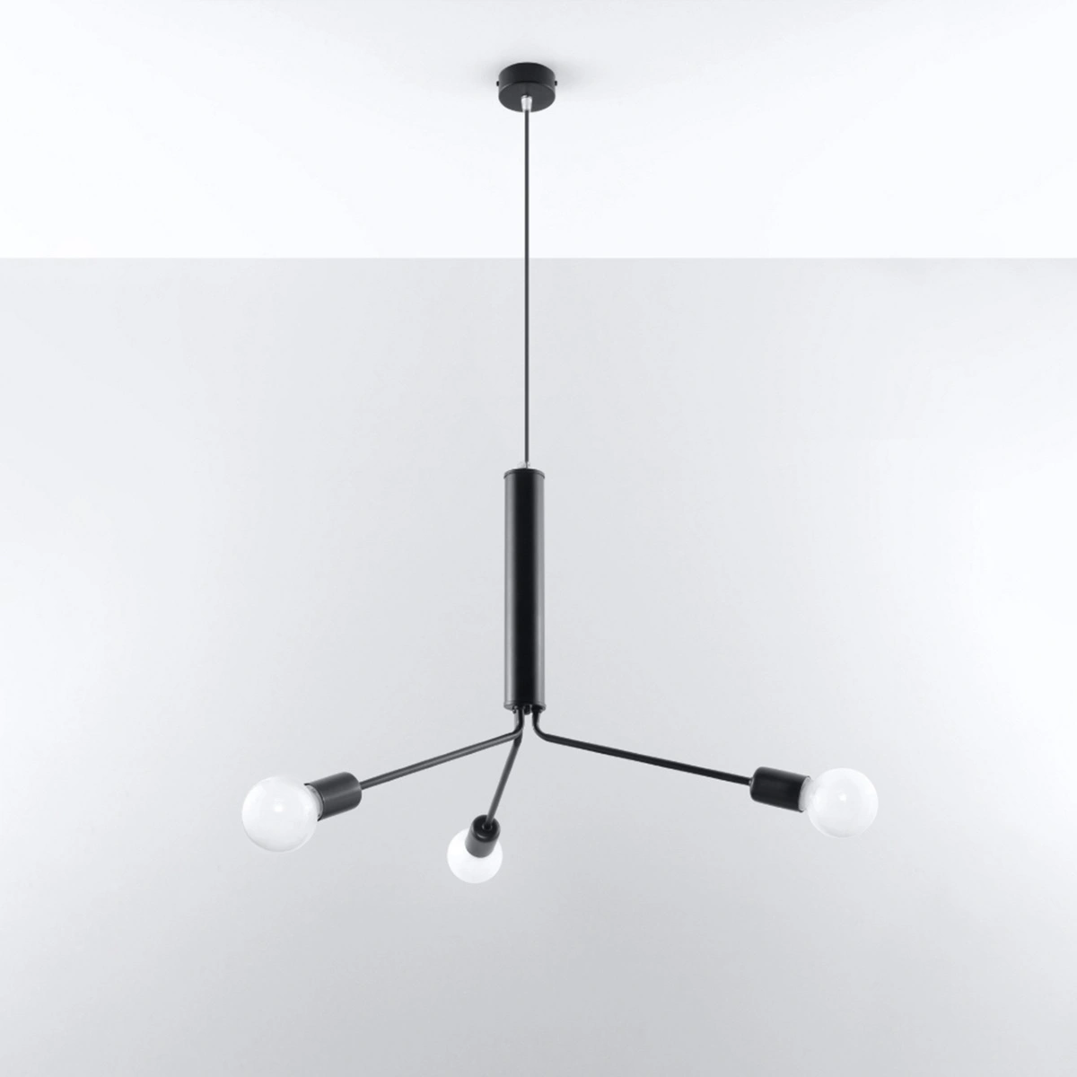 Żyrandol do salonu nowoczesny czarny 3-punktowy metalowy DUOMO Sollux Lighting to propozycja dla miłośników stylu nowoczesnego i industrialnego, którzy cenią wyrazisty design oraz funkcjonalność. Model wykonany z trwałej stali w głębokim, matowym odcieniu czerni oferuje trzy źródła światła, rozłożone symetrycznie na szerokość 75 cm. Dzięki temu doskonale sprawdzi się jako lampa sufitowa do przestronnych wnętrz, zapewniając równomierne oświetlenie oraz unikalny efekt wizualny.