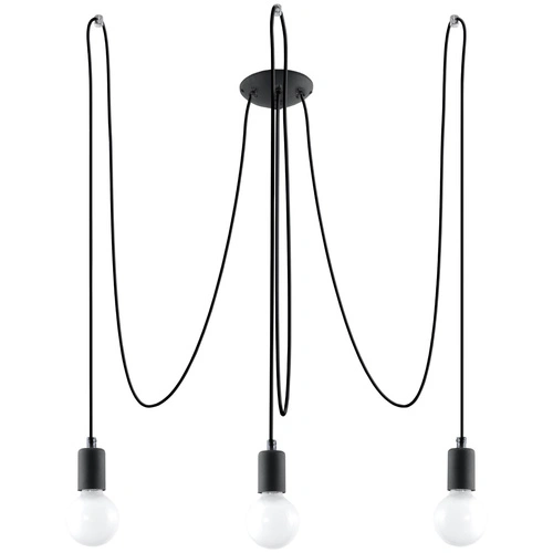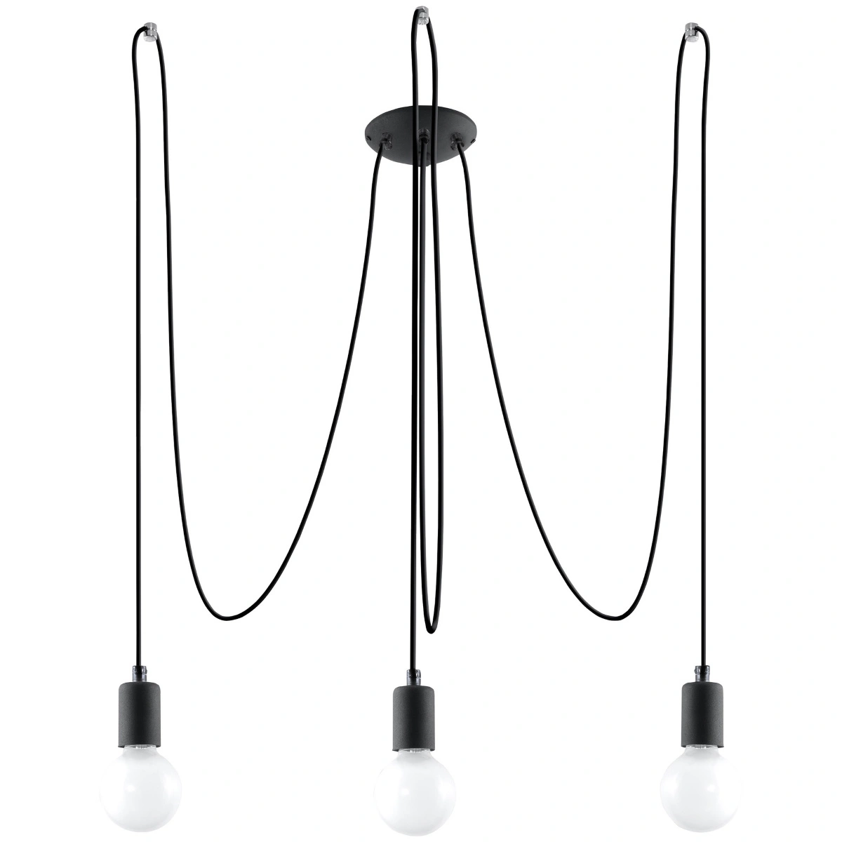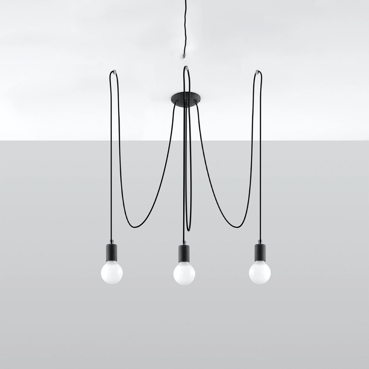Żyrandol EDISON 3 marki SOLLUX LIGHTING to nowoczesna lampa sufitowa o industrialnym charakterze, która harmonijnie łączy stal i tkaninę w czarnym, matowym wykończeniu. Trzypunktowa konstrukcja o imponującej wysokości 150 cm zapewnia efektowne oświetlenie, doskonale sprawdzając się jako lampa wisząca do salonu, jadalni lub sypialni. Model EDISON 3 to propozycja dla osób, które szukają funkcjonalnego żyrandola loftowego z możliwością indywidualnej aranżacji każdego z ramion.