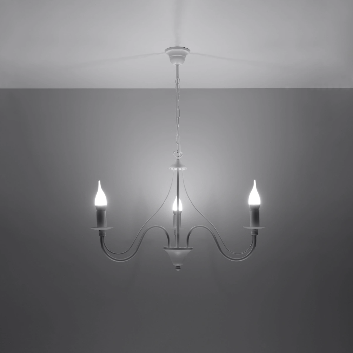 Żyrandol Minerwa 3 biały to połączenie prostoty z nutą retro, które ożywia wnętrze, nie przytłaczając go. Idealnie sprawdzi się jako lampa do kuchni, żyrandol do jadalni czy oświetlenie do sypialni. Biały kolor dodaje lekkości, optycznie powiększa przestrzeń i wprowadza wrażenie czystości. Dzięki wysokości 80 cm żyrandol doskonale prezentuje się w pomieszczeniach o standardowej i podwyższonej wysokości.