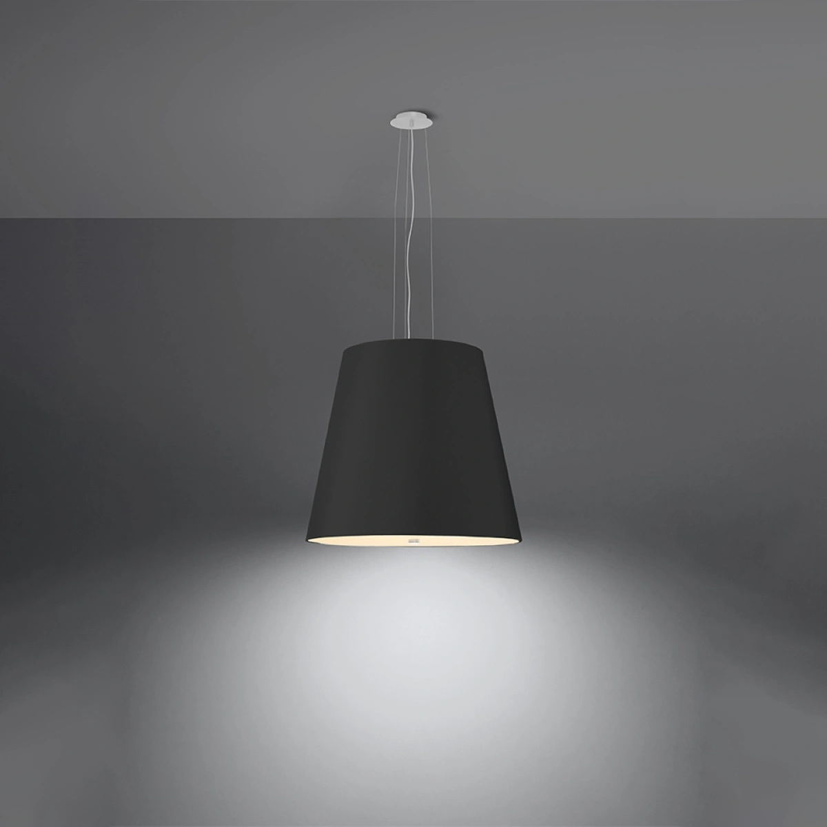 Żyrandol nowoczesny czarny GENEVE 50 marki Sollux Lighting to propozycja dla osób ceniących wyrazisty design i funkcjonalność. Oświetlenie wiszące o średnicy 50 cm i maksymalnej wysokości 140 cm, wykonane z metalu, szkła oraz tkaniny, zachwyca minimalistyczną formą i eleganckim czarnym wykończeniem. Trzypunktowa konstrukcja pozwala na skuteczne doświetlenie salonu, jadalni lub sypialni, tworząc wyjątkową atmosferę w każdym wnętrzu.