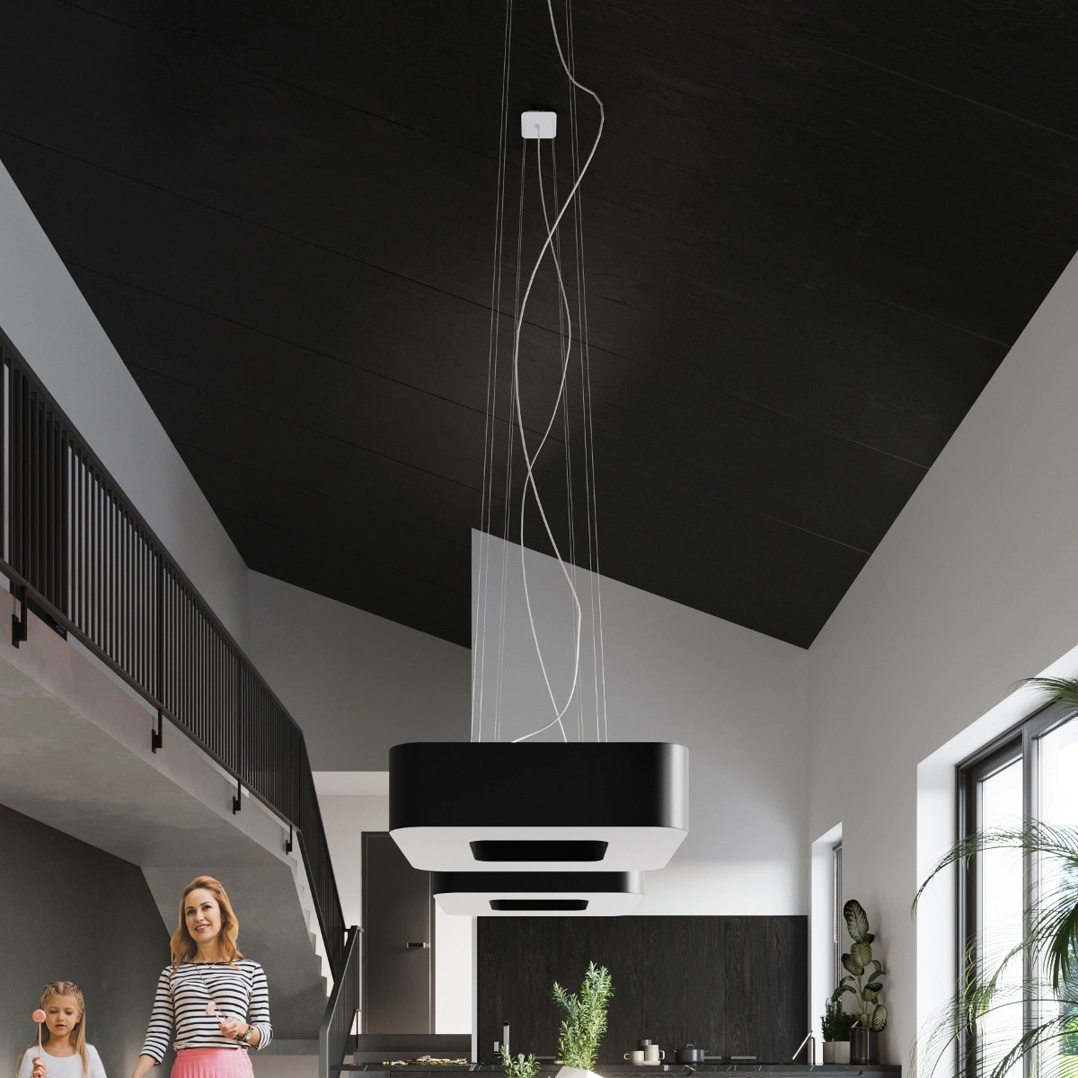 URANO 80 doskonale sprawdzi się jako lampa wisząca do dużych, otwartych przestrzeni, w których liczy się równomierne oświetlenie każdego zakątka. Osiem źródeł światła E27 pozwala na precyzyjne dopasowanie mocy i barwy żarówek – dzięki temu stworzysz zarówno przytulny klimat podczas rodzinnych spotkań, jak i jasne światło do codziennych czynności. Czerń oprawy podkreśla nowoczesny, industrialny styl i doskonale komponuje się zarówno z jasnymi, jak i ciemnymi wnętrzami.