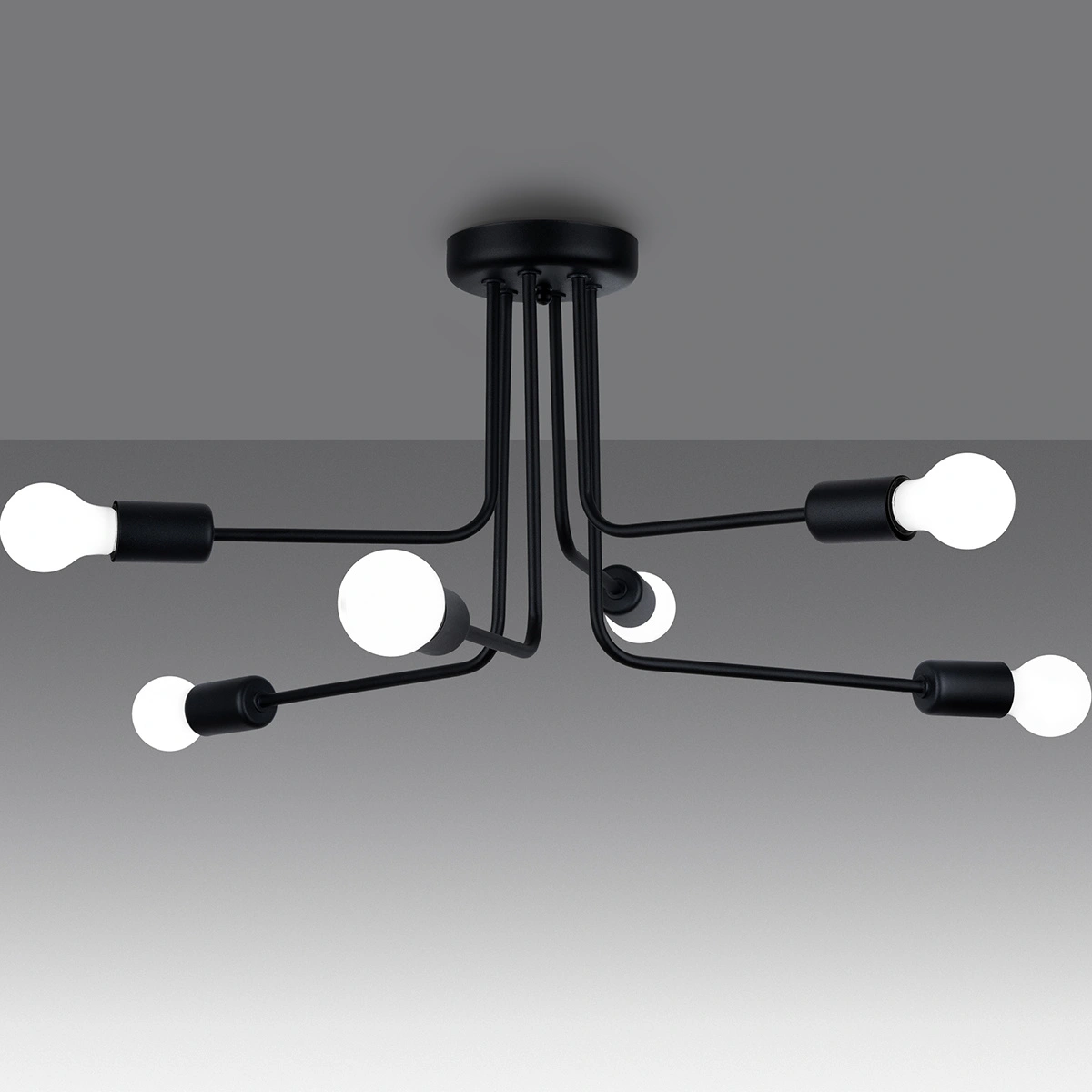 Żyrandol NORAH 6 od SOLLUX LIGHTING to połączenie prostoty i wyrazistości typowej dla współczesnych aranżacji. Geometryczna konstrukcja w czarnej kolorystyce doskonale sprawdzi się zarówno jako żyrandol do salonu, jak i efektowna lampa do jadalni czy sypialni. Dzięki przemyślanemu rozmieszczeniu sześciu źródeł światła, oprawa równomiernie doświetla przestrzeń, tworząc przyjemny, rozproszony blask sprzyjający relaksowi i spotkaniom w gronie najbliższych.