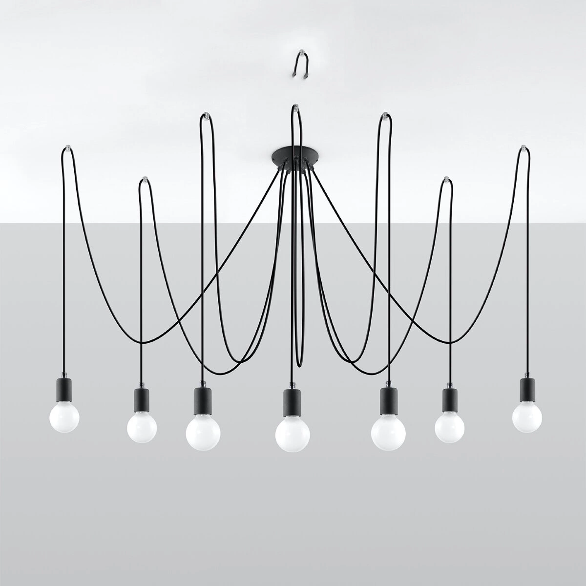 Żyrandol pająk EDISON 7 czarny nowoczesny do salonu, jadalni lub nad stół Sollux