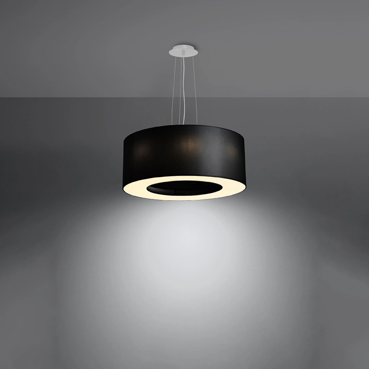 Żyrandol Saturno 50 czarny marki Sollux Lighting to nowoczesna lampa sufitowa o średnicy 50 cm, wykonana z wytrzymałej tkaniny, metalu i tworzywa. Oferuje aż 5 punktów świetlnych, dzięki czemu doskonale doświetli zarówno salon, jak i sypialnię, kuchnię czy jadalnię. Model ten wyróżnia się regulowaną wysokością (do 112 cm), co pozwala łatwo dopasować lampę do każdego wnętrza i wybranej aranżacji.