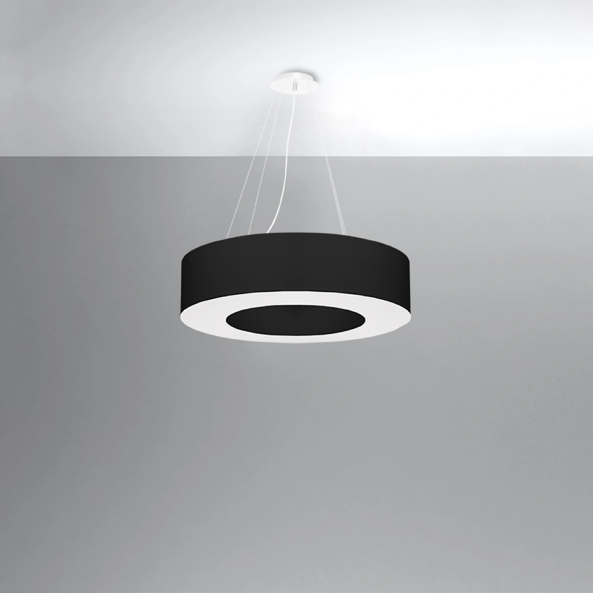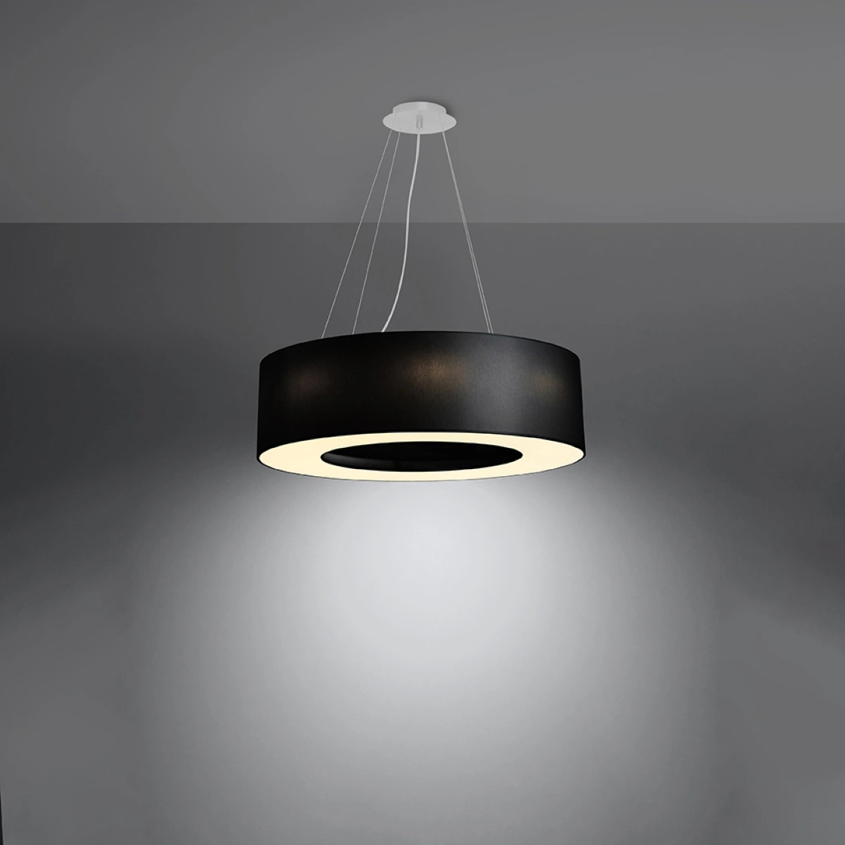 Żyrandol Saturno 70 marki Sollux Lighting to nowoczesna, regulowana lampa sufitowa o imponującej średnicy 70 cm w kolorze głębokiej czerni. Połączenie tkaniny, metalu i tworzywa zapewnia trwałość, a aż 6 punktów świetlnych gwarantuje równomierne oświetlenie każdego pomieszczenia. Dzięki możliwości regulacji wysokości (do 112 cm) oraz uniwersalnej oprawie E27, żyrandol ten sprawdzi się zarówno w salonie, kuchni, jadalni, jak i sypialni.