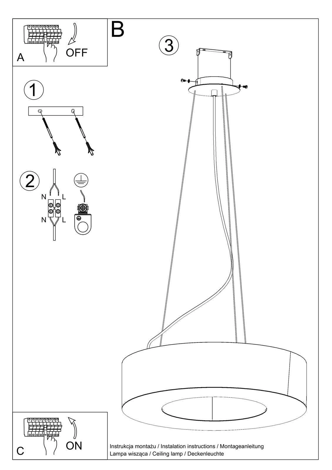 Żyrandol Saturno stworzony został w uniwersalnym standardzie. Trzonek E27 pasował będzie do żarówek tradycyjnych, halogenowych, energooszczędnych oraz LED. Dodatkowo, producent zapewnia zabezpieczenie wszystkich niebezpiecznych elementów przez co lampy używać można bez obaw. Nie zaleca się stosowania przedmiotu w pomieszczeniach wilgotnych jak np. łazienka, ze względu na brak ochrony przed wodą. Lampa po powieszeniu uzyskuje wysokość 1,1 m, ale długość ta może zostać regulowana.