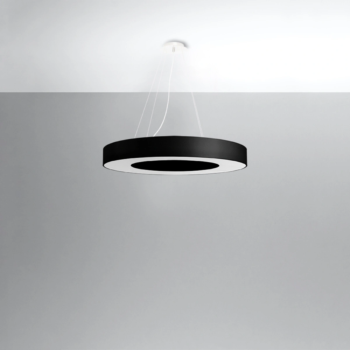 Żyrandol Saturno to idealny wybór jeśli szukasz neutralnego i wydajnego przedmiotu. Okrągła, cylindryczna lampa jest subtelnym i eleganckim dodatkiem do wielu wnętrz takich jak salon, sypialnia, pokój dziecięcy czy restauracja lub hotel. Dostępna jest w trzech rozmiarach szerokości: 50, 70 i 90 cm. W każdej z opcji dostępne jest również rozróżnienie na dwa kolory- czarny i biały. Biała lampa będzie bardziej neutralnym wyborem, a wersja w kolorze czarnym stanowić będzie kontrastującą ozdobę podkreślającą styl wnętrza.