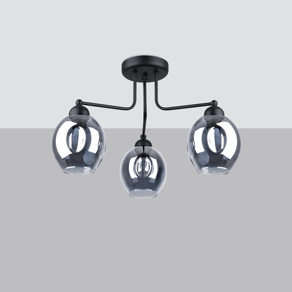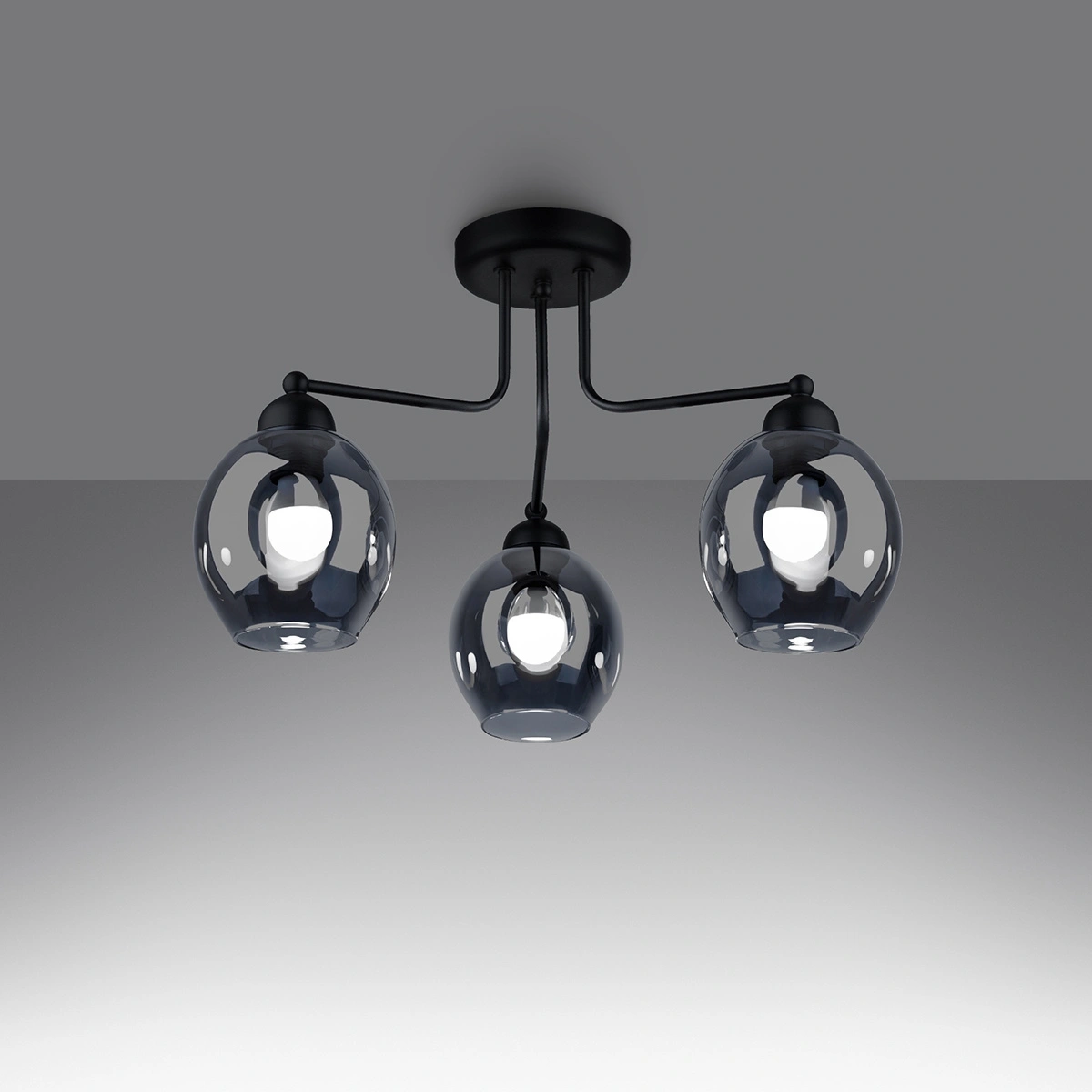 Żyrandol szklany FILLAN 3 marki SOLLUX LIGHTING to nowoczesna lampa sufitowa o średnicy 54 cm, łącząca transparentne klosze ze szlachetną czernią metalu. Trzy szklane kule efektownie rozpraszają światło, tworząc wyjątkową atmosferę zarówno w salonie, jak i nad stołem w jadalni czy w kuchni. Solidna konstrukcja oraz łatwe czyszczenie sprawiają, że ten żyrandol do salonu to inwestycja na lata.