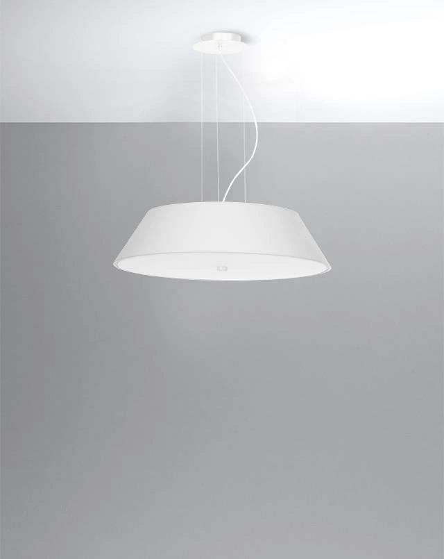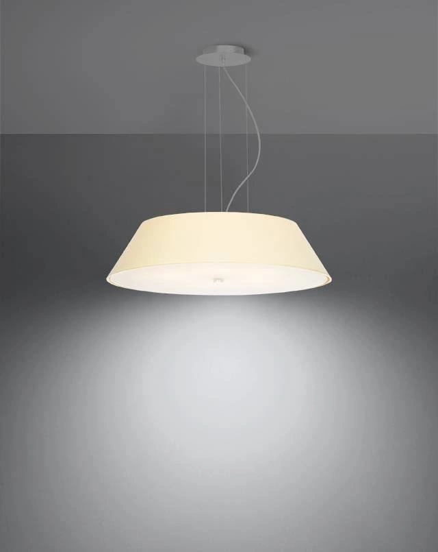 Ten nowoczesny żyrandol wisi na praktycznie niewidocznych linkach, dzięki czemu wydaje się, jakby tkaninowy abażur unosił się w powietrzu. Konstrukcja oraz oprawa żarówki wykonane są ze stali i obłożone tkaniną dostępną w dwóch kolorach. Od dołu znajduje się tafla mlecznego szkła, które doskonale rozproszy światło po całym pokoju. Żyrandol Vega dostępny jest w dwóch wymiarach średnicy - 60 i 70 cm, dzięki czemu bez problemu dostosujesz go do potrzeb swojego wnętrza.