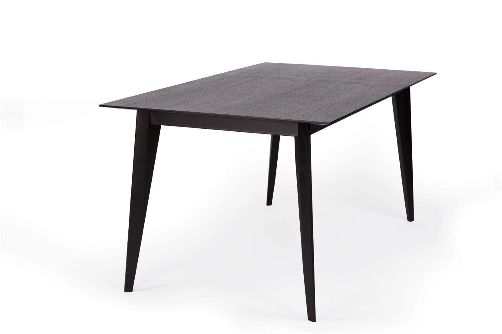 Stół BORD to klasyczna forma stołu do jadalni w minimalistycznym stylu. Starannie wykonana konstrukcja bez wątpienia dopasuje się do różnych aranżacji przestrzeni. BORD będzie wyglądał bardzo elegancko we wnętrzach nowoczesnych, skandynawskich oraz retro. Stół do jadalni BORD to precyzyjne połączenie dębowych nóg, ułożonych pod lekkim skosem, gwarantujących stabilność i solidność oraz stalowej ramy. Piękny detal nóg zachwyca prostotą, tak bardzo poszukiwaną obecnie w najmodniejszych meblach. Blat stołu został wykonany z płyty MDF pokrytej dwustronnie fornirem dębowym, polakierowanym na kolor czarny. Uwagę przyciąga drobna struktura drewna, która zostanie doceniona przez miłośników naturalnych aranżacji. Stół BORD to nie tylko propozycja do jadalni, ale również do kuchni czy eleganckiej restauracji. Stół dostępny w trzech rozmiarach, jednocześnie posiada opcję rozkładania, a użycie dostawki umożliwia powiększenie go o 60 cm. Dzięki temu stół BORD stanie się idealnym miejscem do rodzinnych spotkań i wspólnie spędzonych chwil.