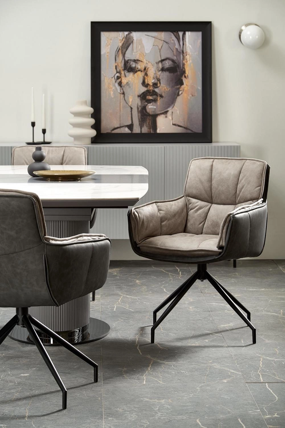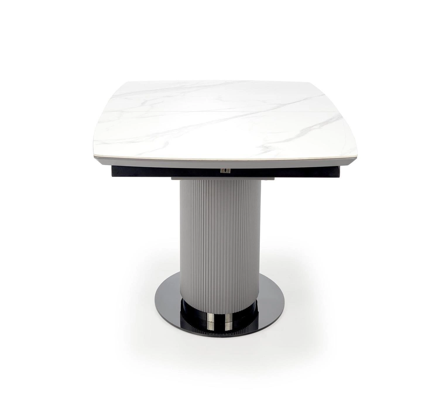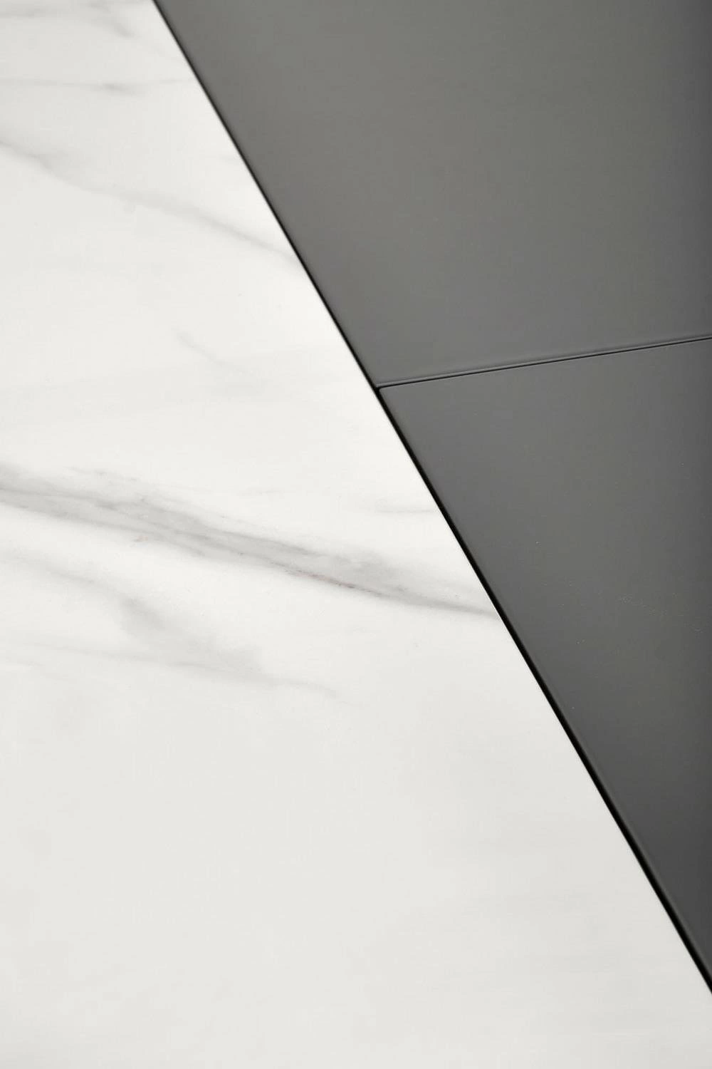 Blat stołu wykonany jest z ceramiki, co gwarantuje jego trwałość i odporność na uszkodzenia. Dodatkowo, materiał ten jest łatwy do utrzymania w czystości, co pozwala na zachowanie eleganckiego wyglądu stołu na dłużej. Noga stołu wykonana jest z lakierowanej proszkowo stali, co zapewnia stabilność i wytrzymałość konstrukcji. Stół Dallas jest w dwóch kolorach — białym marmurze na blacie oraz popielatym jasnym na podstawie. Dzięki temu można dopasować go do swojego wnętrza i stworzyć spójną aranżację.