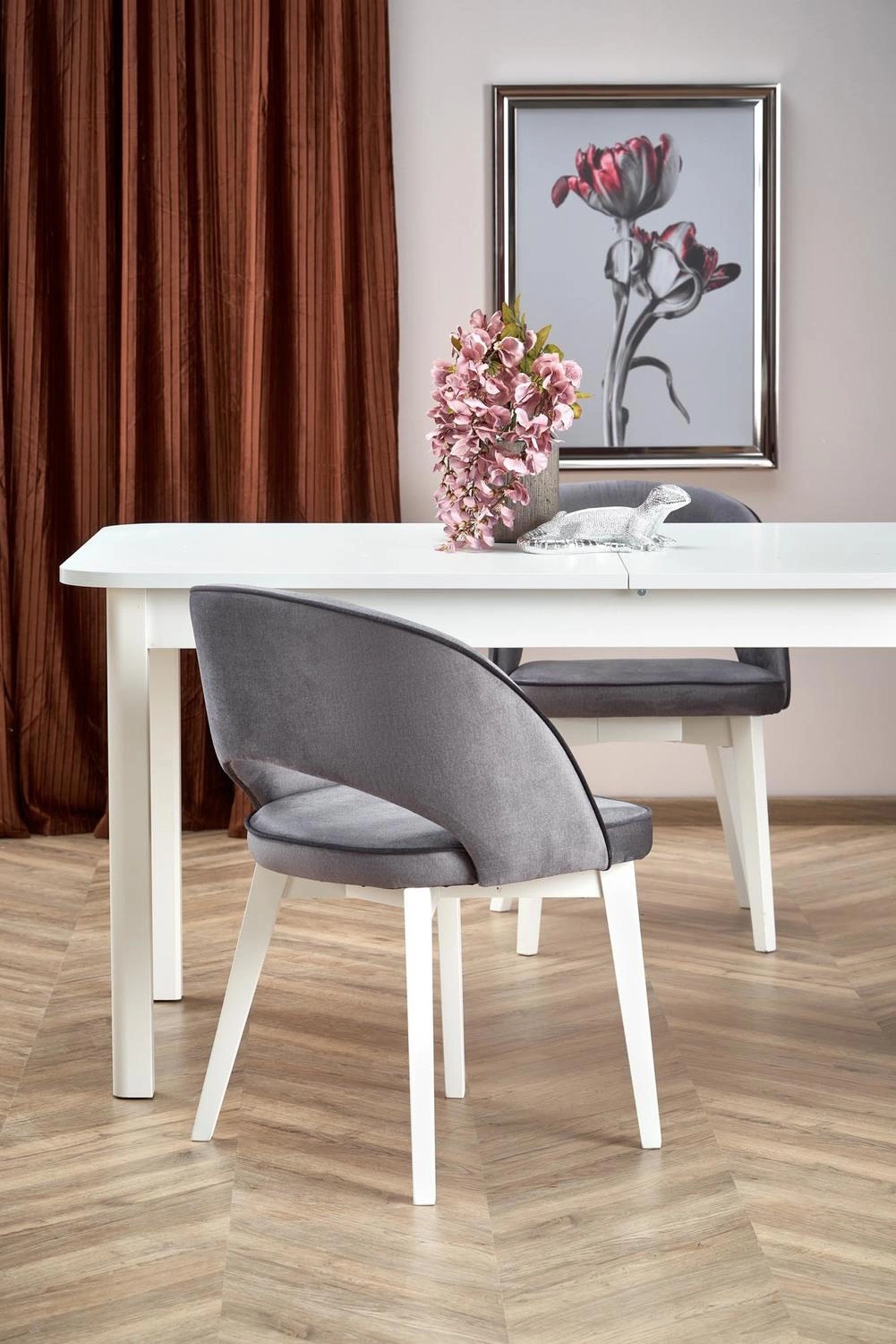 Klasyczny styl wykonania sprawia, że stół Flora pasuje do wielu różnych aranżacji wnętrz. Biały kolor blatu i nóg dodaje mu nowoczesnego i eleganckiego wyglądu. Solidna konstrukcja i materiały wykorzystane do produkcji zapewniają trwałość i wytrzymałość mebla.