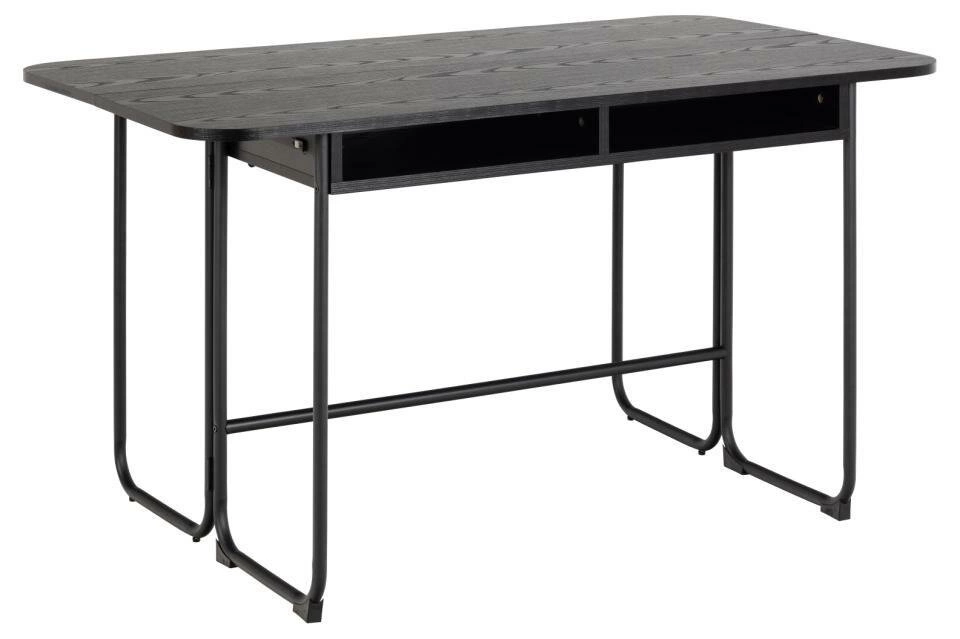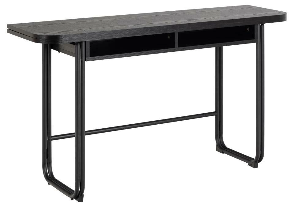 Stół/konsola Darlington to wyjątkowy mebel, który łączy w sobie nowoczesny design, funkcjonalność oraz praktyczność, idealnie dopasowując się do przestrzeni o różnych rozmiarach. Zaprojektowany z myślą o maksymalnym wykorzystaniu miejsca, stół ten wyróżnia się prostokątnym blatem z szorstkiej melaminy w kolorze popielatym czarnym oraz solidną podstawą z matowej, szorstkiej stali malowanej proszkowo na czarno. Jego innowacyjna funkcja wysuwanego skrzydła pozwala na zwiększenie powierzchni użytkowej o dodatkowe 40 cm, co sprawia, że stół może być używany zarówno w mniejszych, jak i większych pomieszczeniach. Dzięki swojej wszechstronności może pełnić funkcję stołu jadalnianego, biurka lub konsoli w przedpokoju, salonie czy gabinecie.