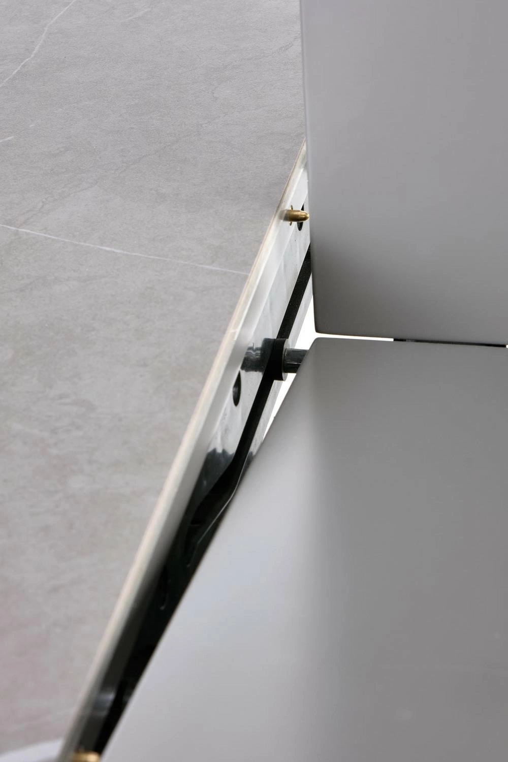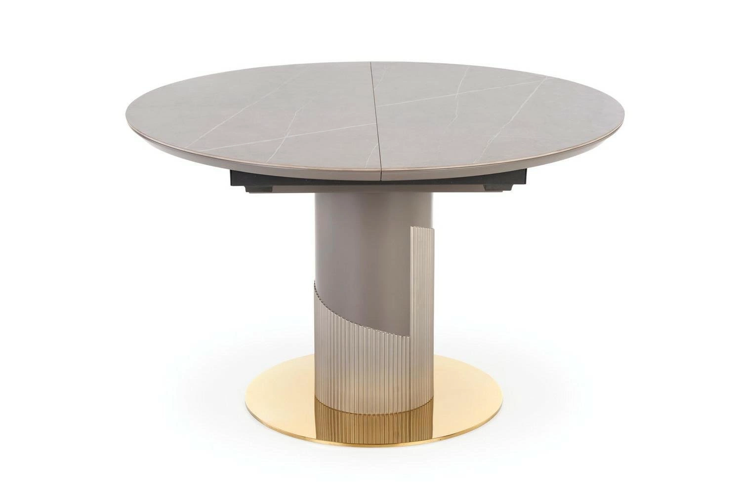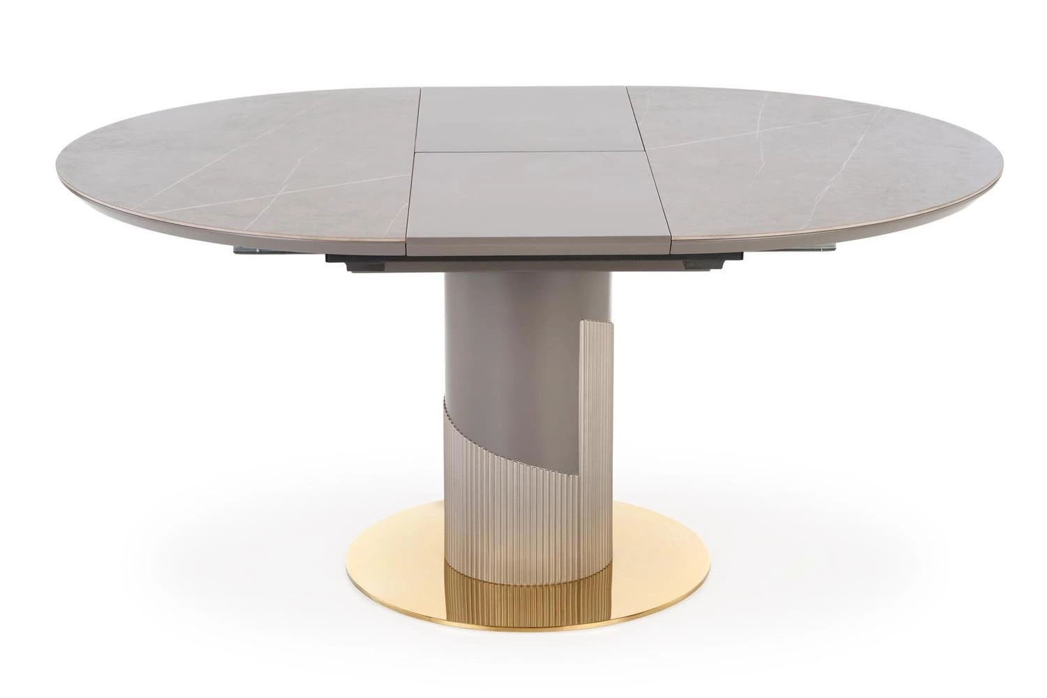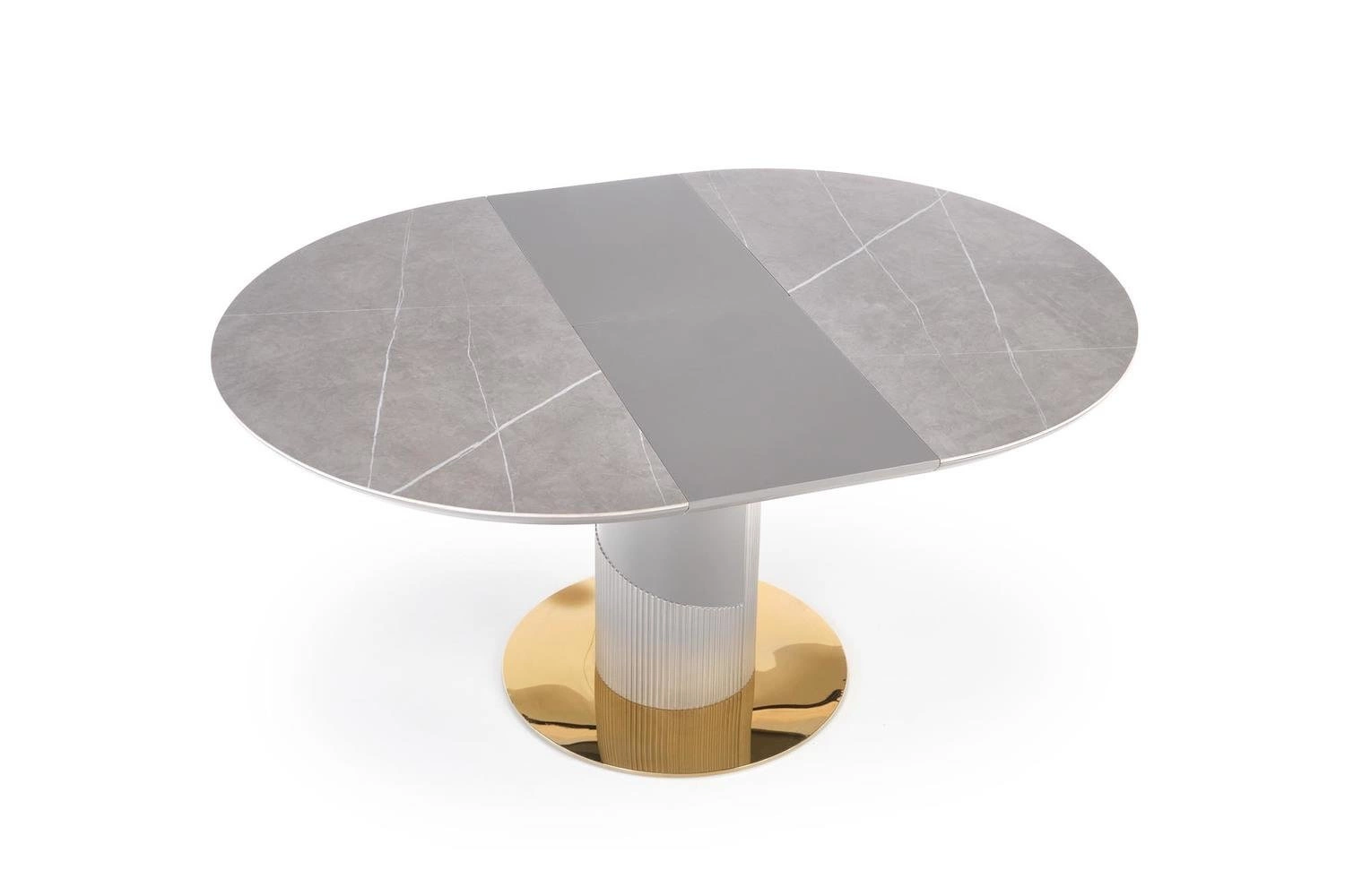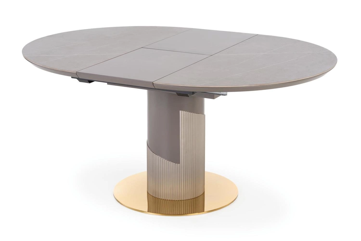 Blat stołu wykonany jest z ceramiki i MDF lakierowanego, co zapewnia trwałość i łatwość w utrzymaniu czystości. Dzięki temu, że blat jest rozkładany, można go łatwo dopasować do potrzeb i liczby gości. Styl glamour i nowoczesny dodaje elegancji i stylu do wnętrza, a kolor popielaty marmur i jasny popiel noga w połączeniu ze złotymi elementami sprawiają, że stół Moette staje się prawdziwą ozdobą pomieszczenia.