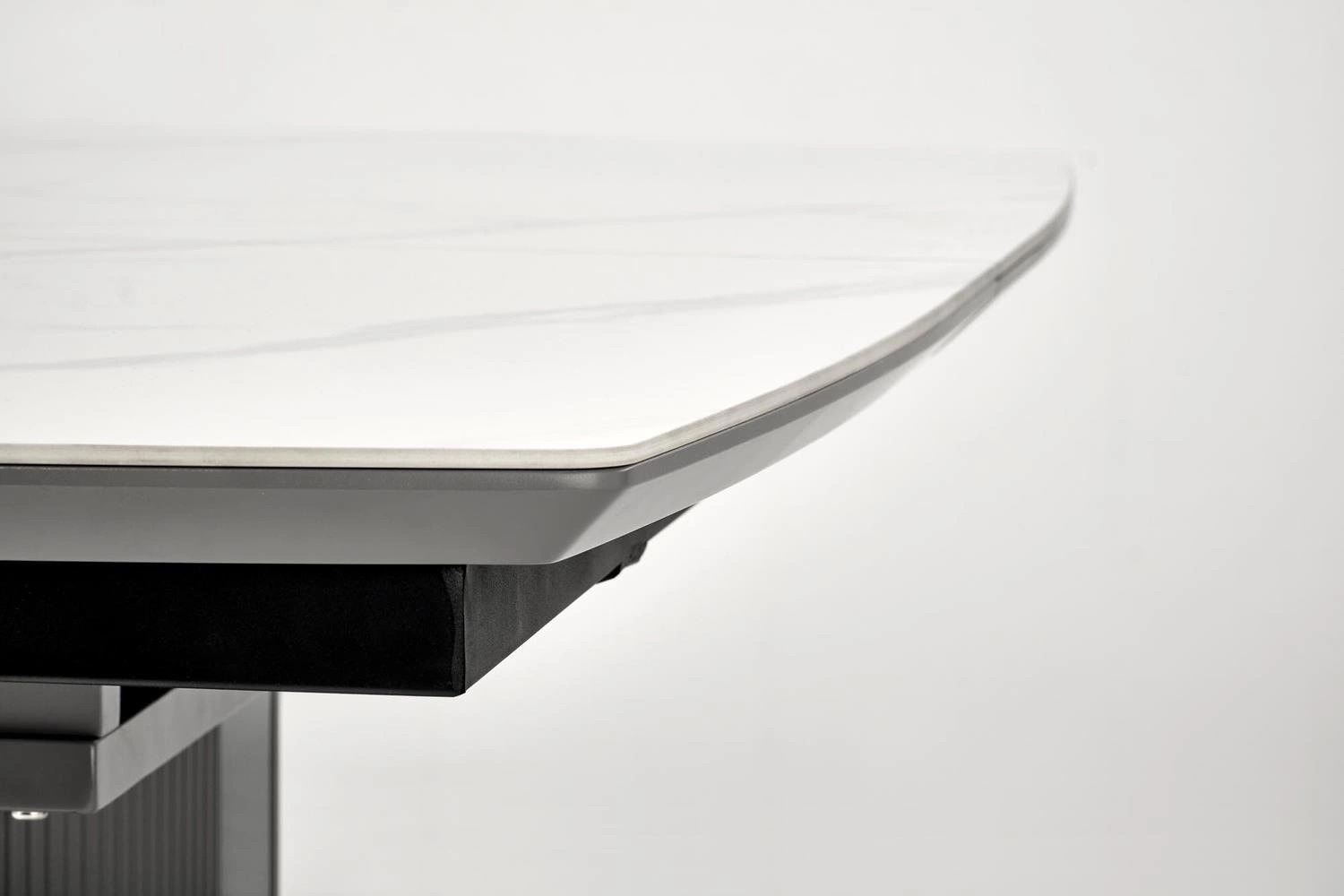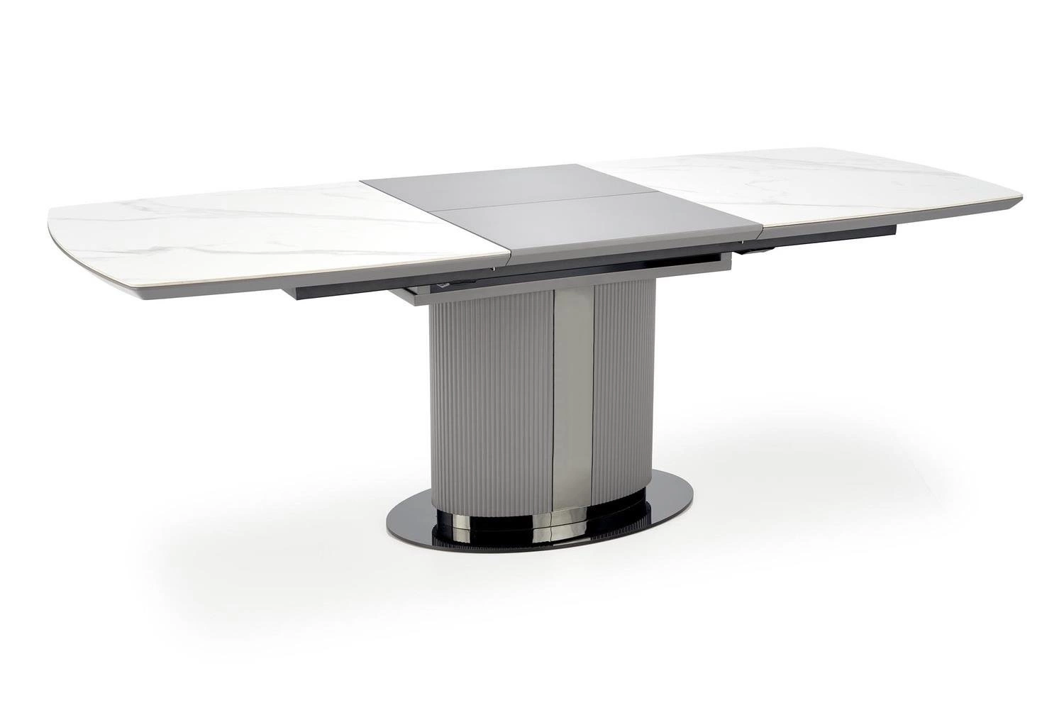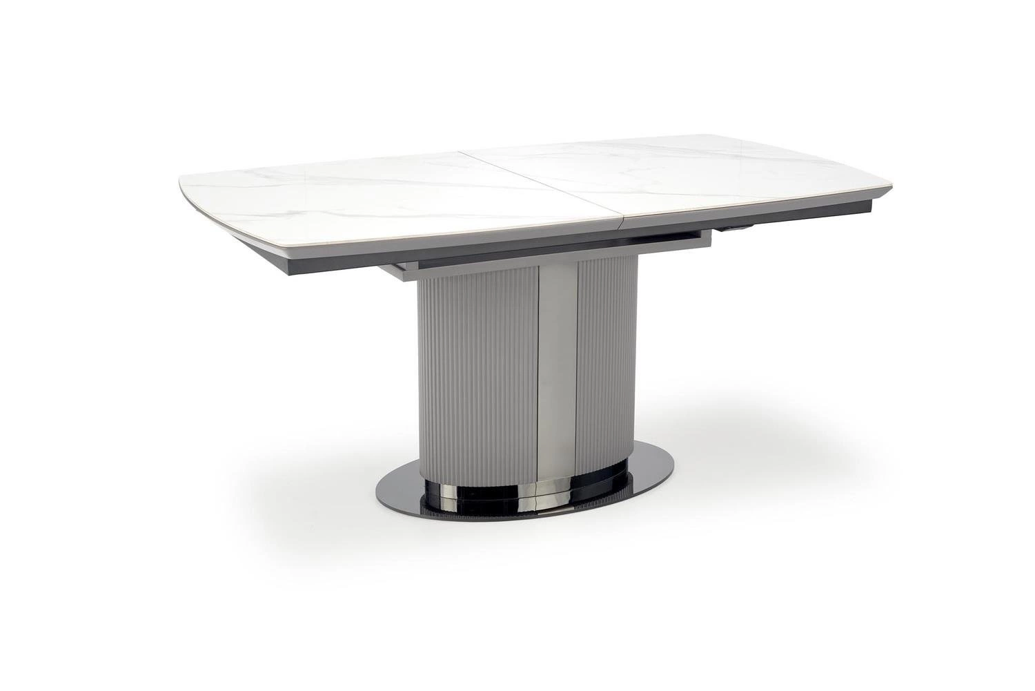 Blat stołu wykonany jest z ceramiki, co gwarantuje jego trwałość i odporność na uszkodzenia. Dodatkowo, materiał ten jest łatwy do utrzymania w czystości, co pozwala na zachowanie eleganckiego wyglądu stołu na dłużej. Noga stołu wykonana jest z lakierowanej proszkowo stali, co zapewnia stabilność i wytrzymałość konstrukcji. Stół Dallas jest w dwóch kolorach — białym marmurze na blacie oraz popielatym jasnym na podstawie. Dzięki temu można dopasować go do swojego wnętrza i stworzyć spójną aranżację.
