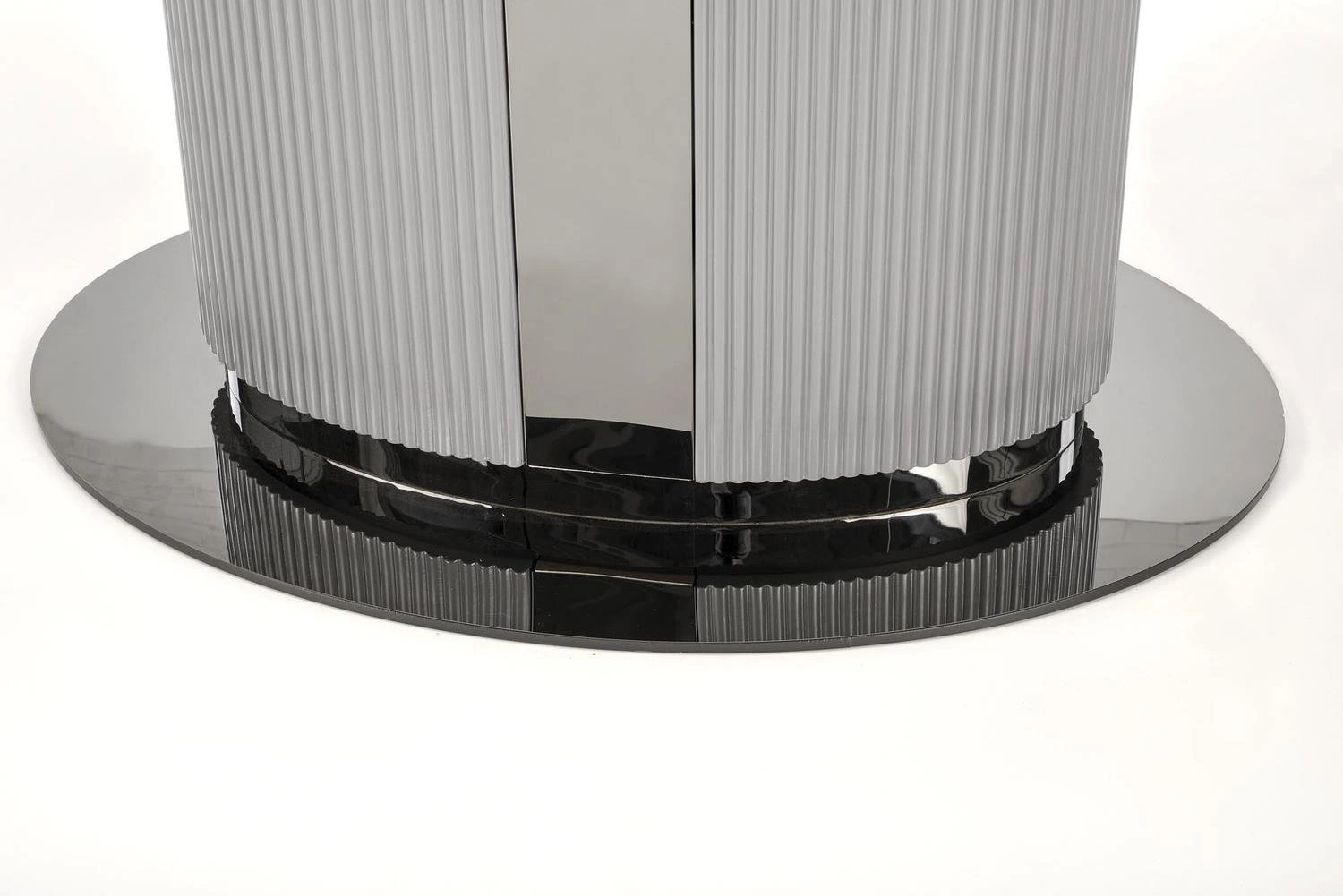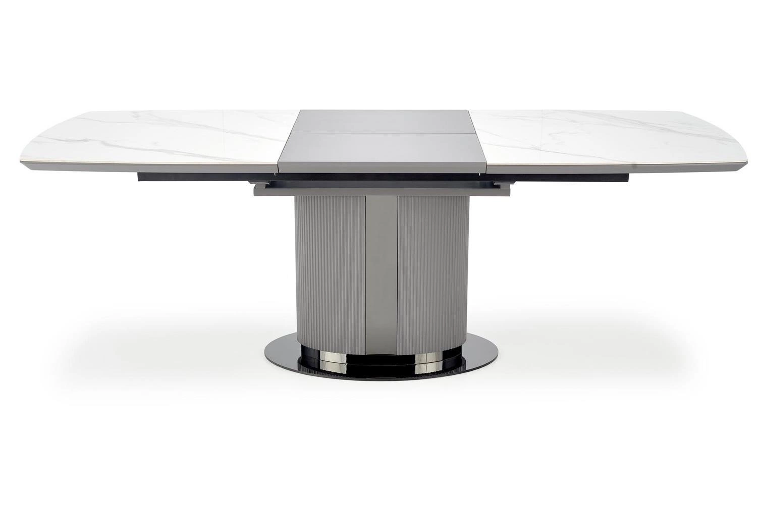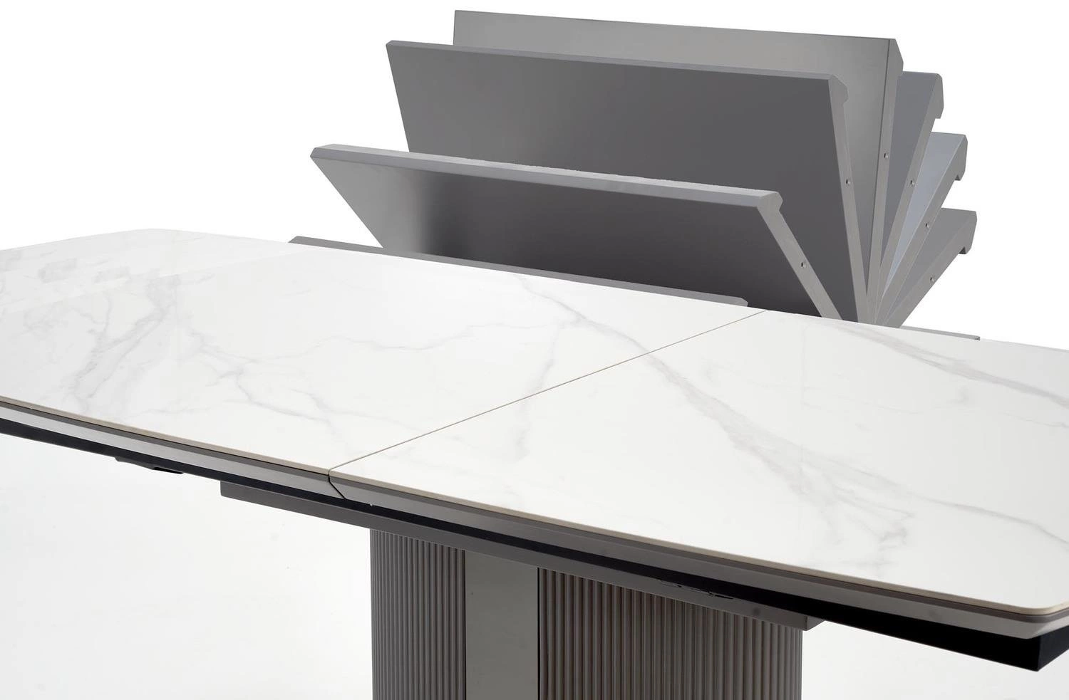 Blat stołu wykonany jest z ceramiki, co gwarantuje jego trwałość i odporność na uszkodzenia. Dodatkowo, materiał ten jest łatwy do utrzymania w czystości, co pozwala na zachowanie eleganckiego wyglądu stołu na dłużej. Noga stołu wykonana jest z lakierowanej proszkowo stali, co zapewnia stabilność i wytrzymałość konstrukcji. Stół Dallas jest w dwóch kolorach — białym marmurze na blacie oraz popielatym jasnym na podstawie. Dzięki temu można dopasować go do swojego wnętrza i stworzyć spójną aranżację.