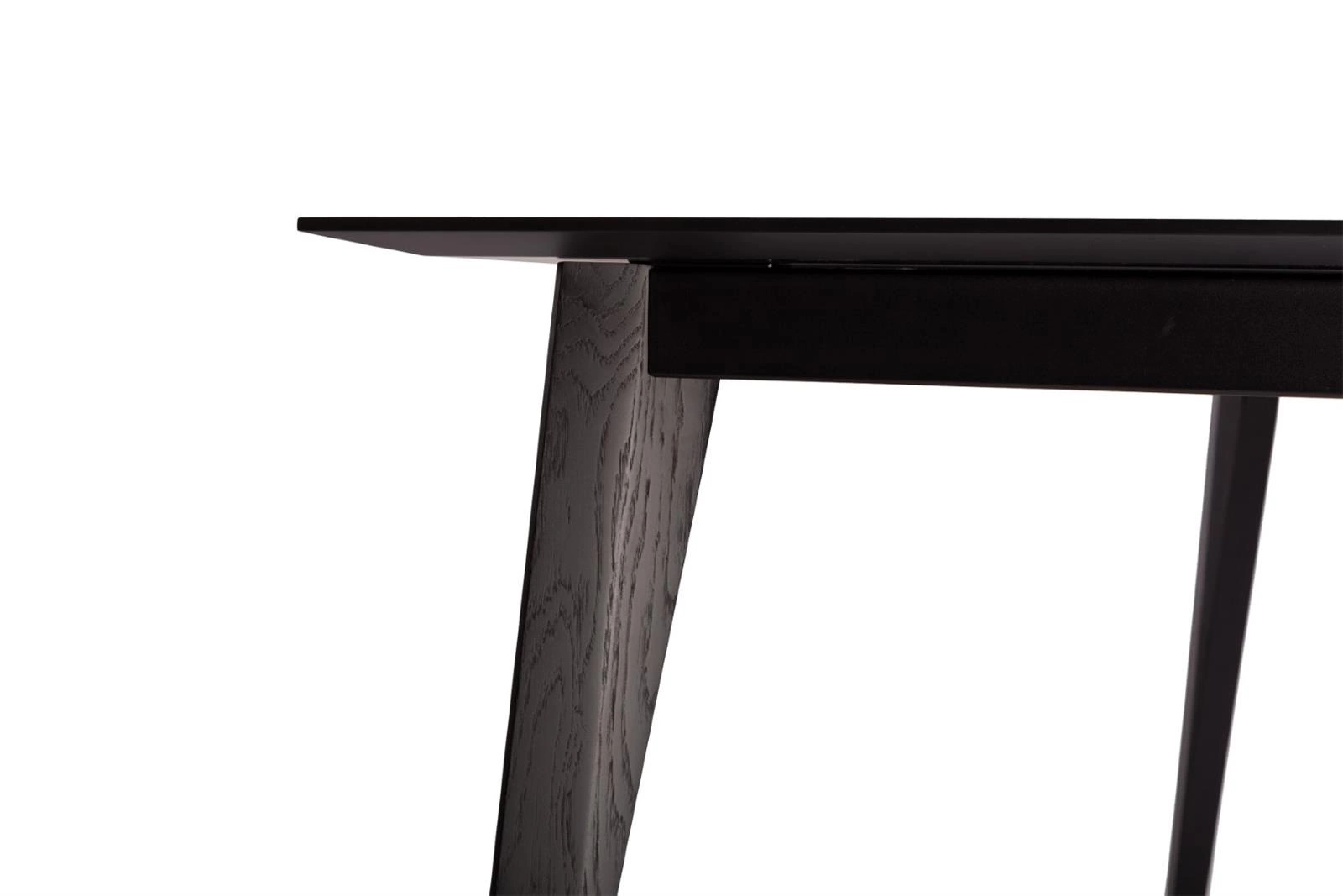 Stół BORD to klasyczna forma stołu do jadalni w minimalistycznym stylu. Starannie wykonana konstrukcja bez wątpienia dopasuje się do różnych aranżacji przestrzeni. BORD będzie wyglądał bardzo elegancko we wnętrzach nowoczesnych, skandynawskich oraz retro. Stół do jadalni BORD to precyzyjne połączenie dębowych nóg, ułożonych pod lekkim skosem, gwarantujących stabilność i solidność oraz stalowej ramy. Piękny detal nóg zachwyca prostotą, tak bardzo poszukiwaną obecnie w najmodniejszych meblach. Blat stołu został wykonany z płyty MDF pokrytej dwustronnie fornirem dębowym, polakierowanym na kolor czarny. Uwagę przyciąga drobna struktura drewna, która zostanie doceniona przez miłośników naturalnych aranżacji. Stół BORD to nie tylko propozycja do jadalni, ale również do kuchni czy eleganckiej restauracji. Stół dostępny w trzech rozmiarach, jednocześnie posiada opcję rozkładania, a użycie dostawki umożliwia powiększenie go o 60 cm. Dzięki temu stół BORD stanie się idealnym miejscem do rodzinnych spotkań i wspólnie spędzonych chwil.