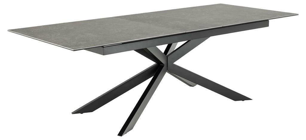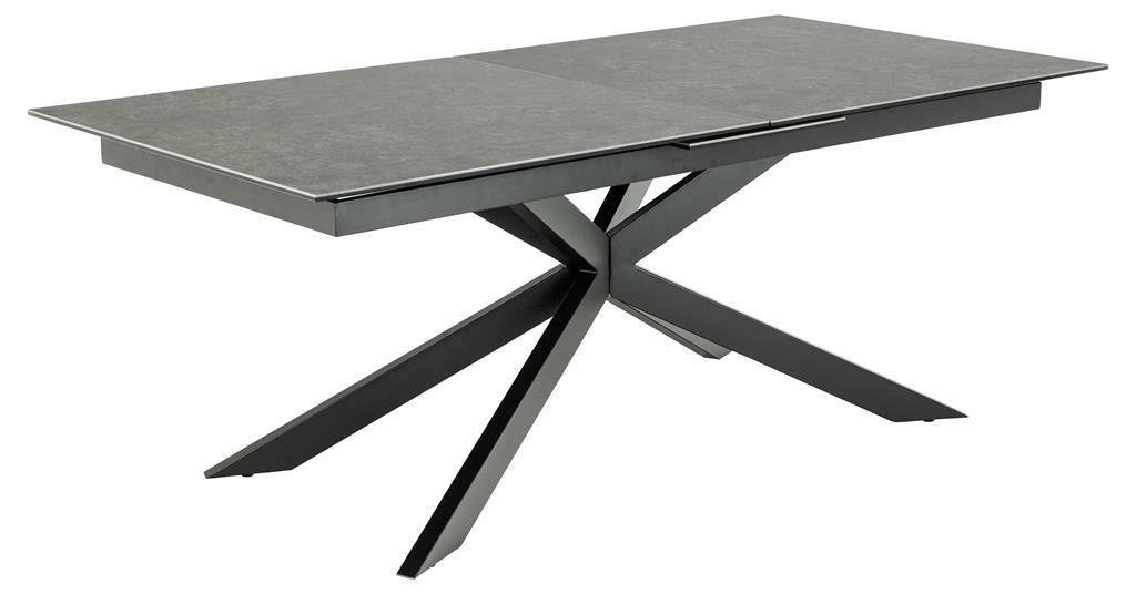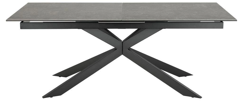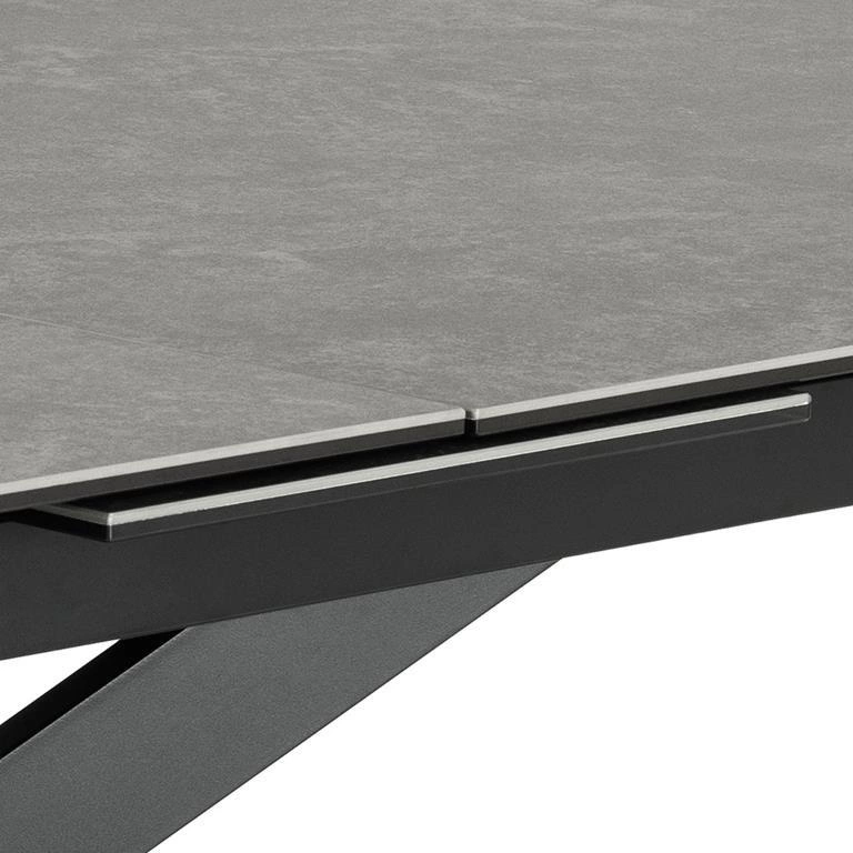 Rozkładany stół kuchenny Irwine posiada czarny, ceramiczny blat i czarną podstawę w kształcie krzyża, dzięki czemu może pomieścić od 8 do 10 osób. Łatwo powiększ powierzchnię za pomocą dodatkowego blatu i ciesz się odpornym na zarysowania, odpornym w dobrym stylu.