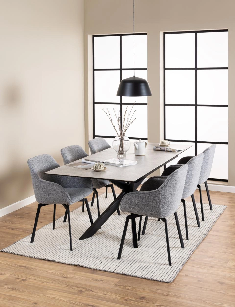 Stół Irwine Anista to niezwykle elegancki i funkcjonalny mebel, który doskonale sprawdzi się w każdej nowoczesnej jadalni. Jego szary ceramiczny blat nadaje mu industrialnego charakteru, jednocześnie dodając mu lekkości i elegancji. Dzięki możliwości przedłużenia w zakresie od 168 do 210 cm, stół ten idealnie dostosuje się do potrzeb użytkownika, pozwalając na wygodne ustawienie dodatkowych miejsc przy stole.