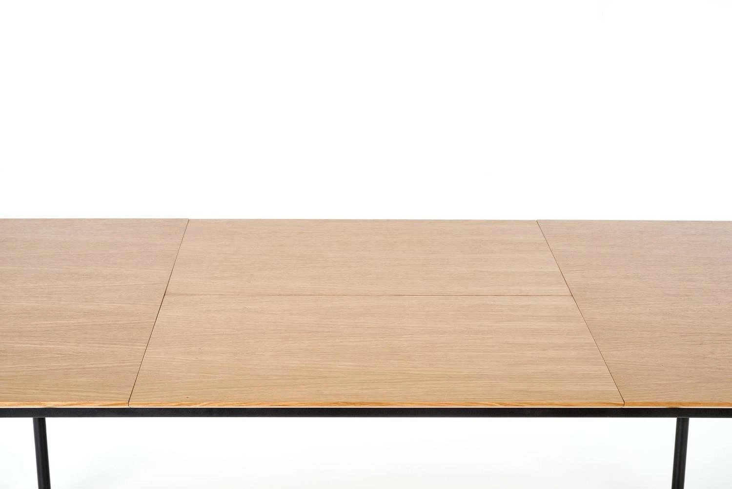 Stół Smart to idealne rozwiązanie dla osób, które cenią sobie nowoczesny styl i funkcjonalność. Dzięki możliwości rozłożenia stołu, jego długość może wynosić od 170 do 250 cm, co pozwala na wygodne usadzenie nawet dziesięciu osób. Blat wykonany jest z wysokiej jakości MDF-u pokrytego naturalną okleiną dębową, co nadaje mu niepowtarzalnego charakteru i elegancji.