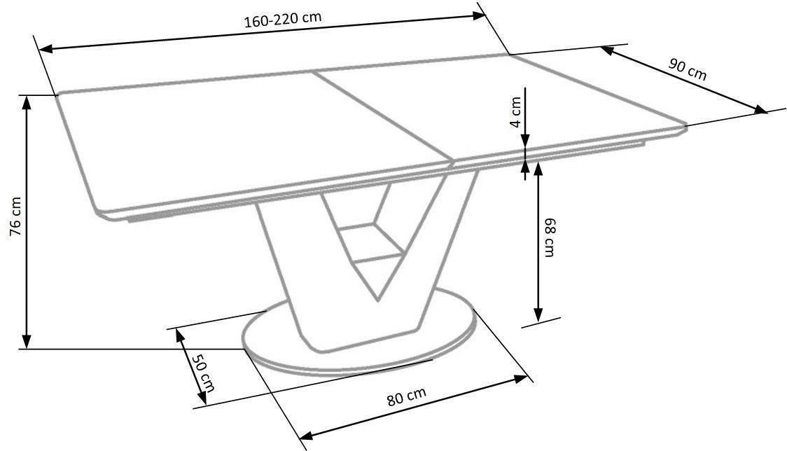 Jeśli szukasz stołu, który połączy w sobie nowoczesny styl z elegancją, to Vermut będzie idealnym wyborem dla Ciebie! Ten rozkładany stół pozwoli Ci zaprosić więcej gości na przyjęcie, bez obaw o brak miejsca. Dzięki temu, że jego wymiary to 160-220/90/76 cm, zmieści się w większości pomieszczeń, a po rozłożeniu zapewni wygodne miejsce nawet dla 8 osób. Blat stołu wykonany jest z MDF-u lakierowanego oraz ceramiki, co gwarantuje jego wytrzymałość i odporność na uszkodzenia.