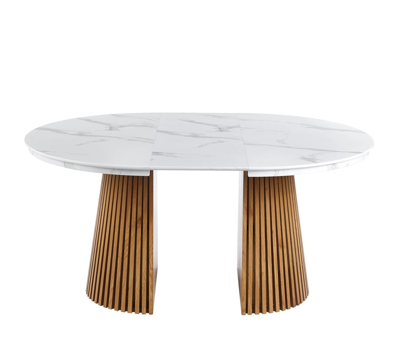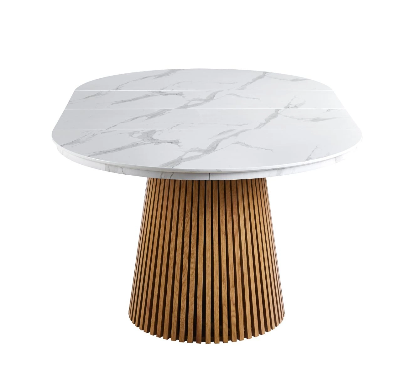 Stół rozkładany Kyoto okrągły 120/200cm biały marmur/dąb – funkcjonalność i elegancja w jednym