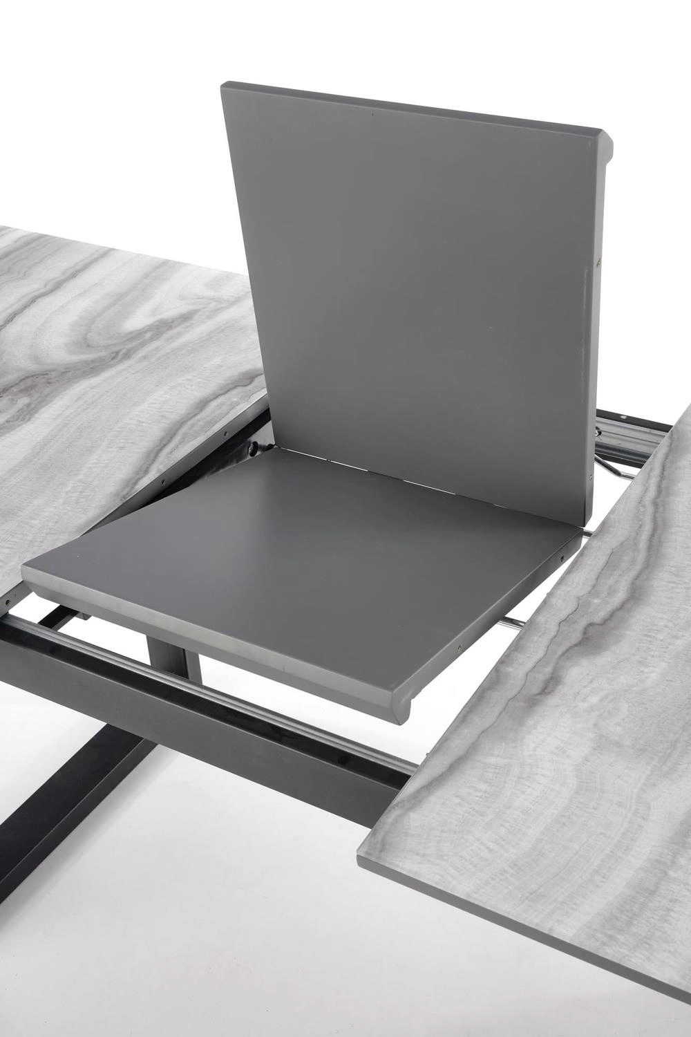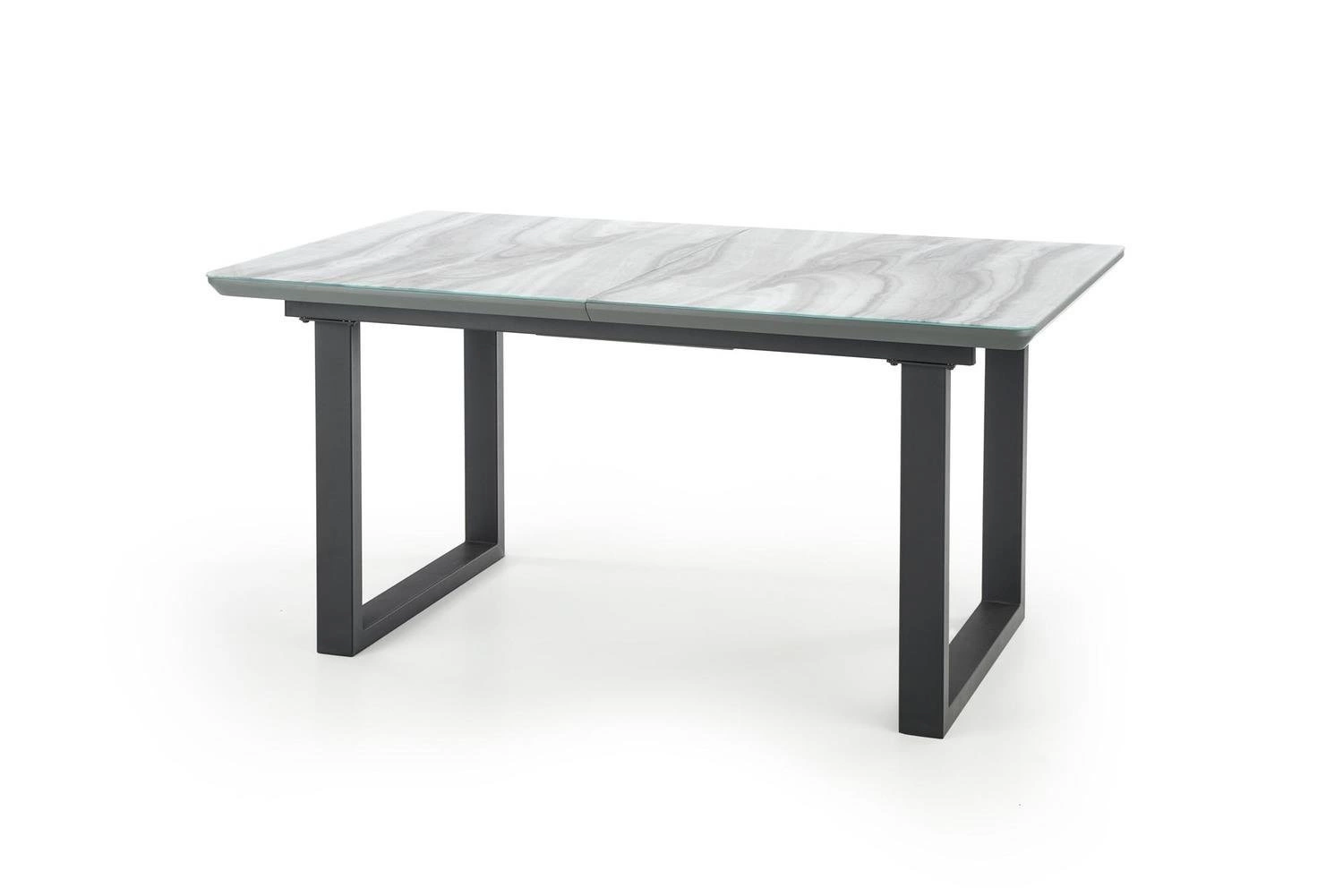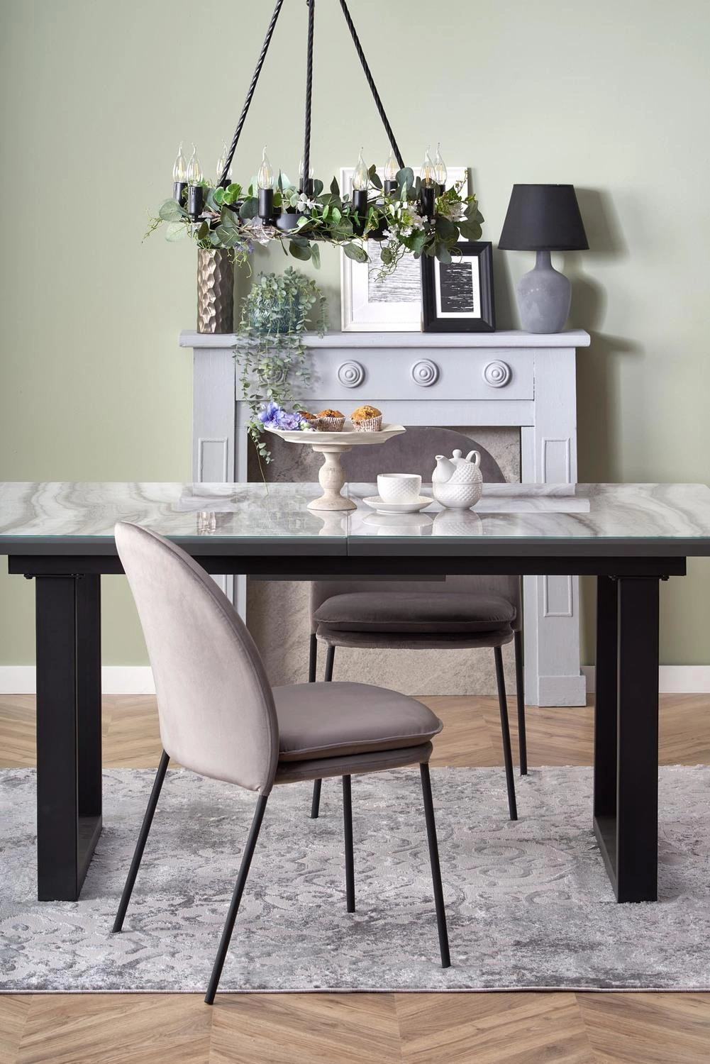 Materiały, z których został wykonany ten stół (szkło, MDF lakierowane, stal malowana proszkowo), zapewniają trwałość i estetyczny wygląd na długie lata. Blat w kolorze białego marmuru i popielatym, w połączeniu z czarnymi nogami, nadaje stołowi loftowego i nowoczesnego stylu. Stół Rowel jest idealnym rozwiązaniem dla rodzin i osób, które często organizują spotkania ze znajomymi. Jego prostokątny kształt i wielkość sprawiają, że pomieści on wygodnie większą liczbę osób.