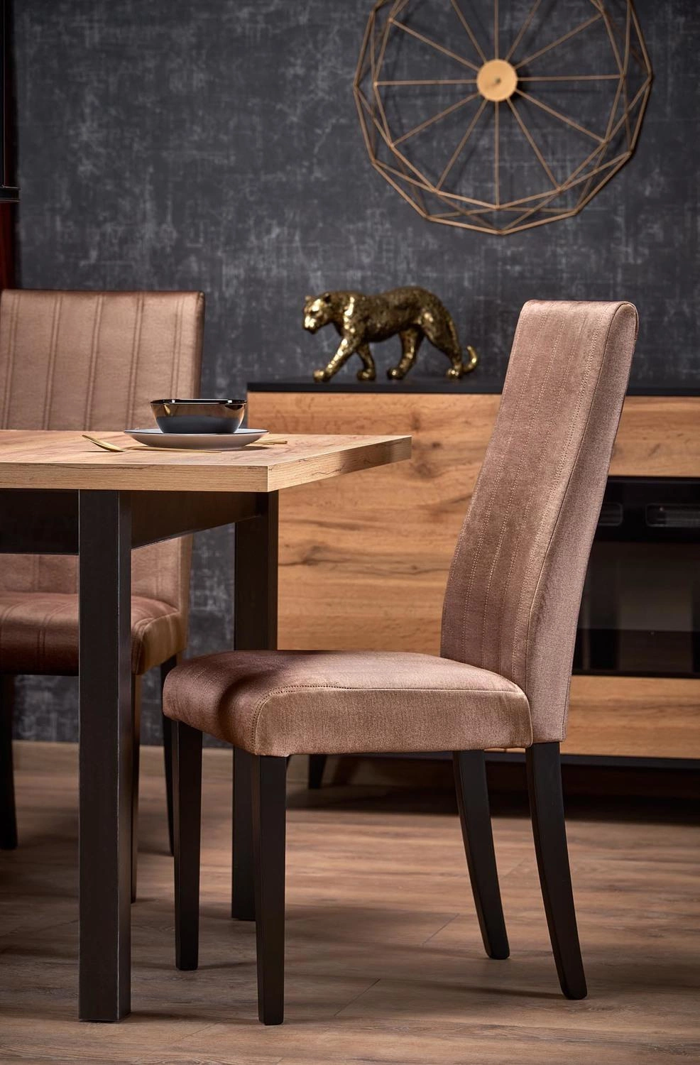 Blat stołu Tiago wykonany jest z trwałej płyty meblowej laminowanej, która jest łatwa w utrzymaniu czystości. Kolor blatu w odcieniu naturalnego dębu nadaje stołu elegancji i ponadczasowego charakteru. Nogi stołu wykonane są z wytrzymałej płyty MDF, które gwarantuje stabilność i solidność konstrukcji. Kolor czarnych nóg wprowadza subtelny akcent do designu stołu. Styl wykonania stołu Tiago to połączenie skandynawskiego minimalizmu, tradycyjnego uroku i boho swobody. To mebel, który doskonale wpisuje się w różnorodne aranżacje wnętrz, dodając im charakteru i osobowości. Wybierając Tiago, inwestujesz w jakość, wygodę i piękno w jednym. Ciesz się niezapomnianymi chwilami spędzanymi wokół tego eleganckiego stołu.