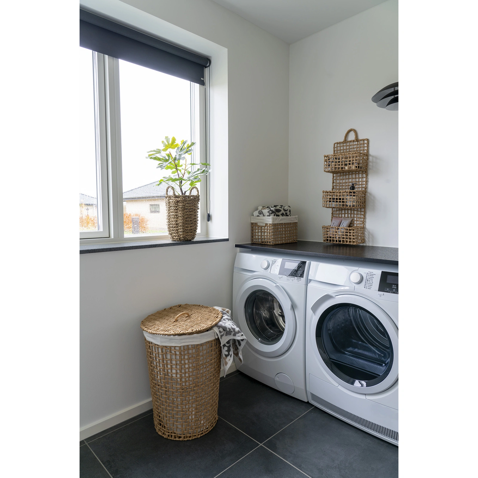 - Naturalno–biała kolorystyka boho – pozwala dopasować kosz na pranie do jasnych, przytulnych łazienek i garderób.