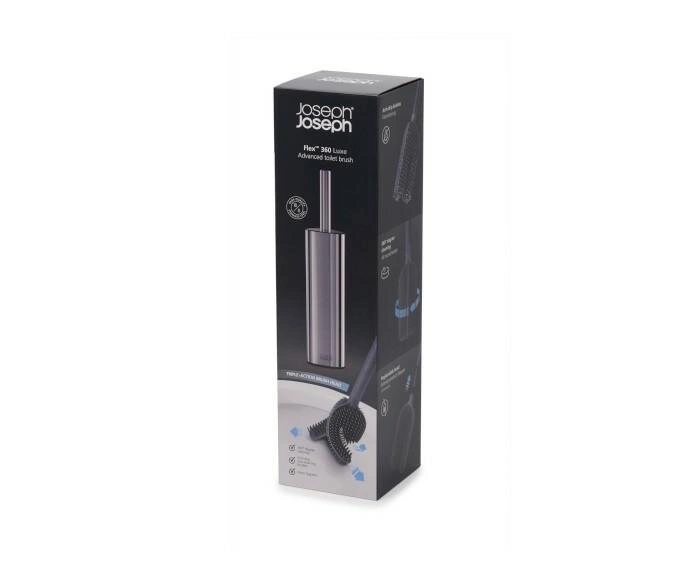 Szczotka toaletowa JJ Flex 360 to doskonałe połączenie funkcjonalności i stylu. Wyposażona jest w innowacyjną, wymienną główkę, która potrafi czyścić jednocześnie w trzech kierunkach. To zapewnia skuteczne i szybkie czyszczenie nawet w najtrudniej dostępnych miejscach. Szczotka posiada również szeroko rozstawione włosie, które jest łatwe do oczyszczenia, dzięki czemu utrzymanie jej w czystości jest proste i wygodne.