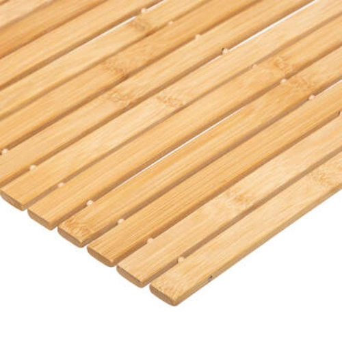 Duży model tej podkładki zapewnia wygodne miejsce do stania. Bez względu na to, czy jesteś po prysznicu, kąpieli czy po prostu chcesz wygodnie wysuszyć stopy, ta podkładka zagwarantuje Ci odpowiednią powierzchnię. Nie musisz już martwić się o to, że będziesz musiał stawać na zimnej i niekomfortowej podłodze. Bambusowa konstrukcja tej podkładki nadaje jej nie tylko elegancki wygląd, ale również zapewnia trwałość i odporność na wilgoć. Bambus to naturalny materiał, który jest znany ze swojej wytrzymałości i trwałości. Tworzywo sztuczne, z kolei, dodaje podkładce elastyczności i odporności na uszkodzenia.
