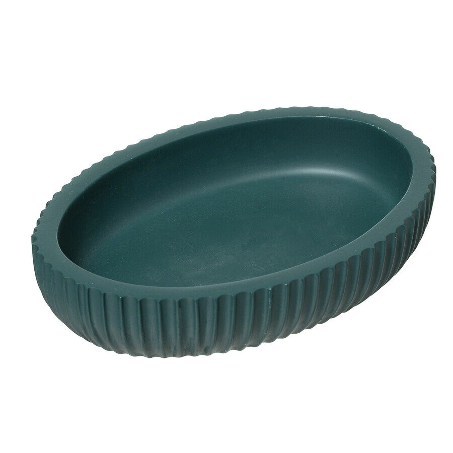 Mydelniczka do łazienki Modern morska marki 5five simply smart to połączenie nowoczesnego designu, funkcjonalności i naturalnych materiałów. Wykonana z drewna bambusowego i kamienia, zachwyca owalnym kształtem i subtelną morsko-zieloną kolorystyką. Jej kompaktowe wymiary – 12,5 cm szerokości, 8,9 cm głębokości i 2,5 cm wysokości – sprawiają, że świetnie sprawdzi się zarówno na umywalce, wannie, jak i półce pod prysznicem.