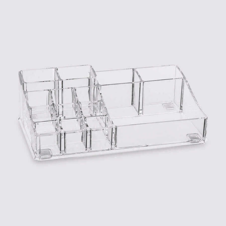 Dzięki przemyślanemu układowi przegródek organizer na kosmetyki Selena sprawia, że codzienny makijaż staje się prostszy i bardziej przyjemny. Każdy kosmetyk ma swoje miejsce, a Ty zyskujesz pewność, że nic nie zginie wśród akcesoriów. Kompaktowe wymiary (wysokość 12,7 cm, głębokość 7 cm) sprawiają, że ten organizer na kosmetyki do szuflady lub na blat toaletki nie zajmuje dużo miejsca, jednocześnie oferując zaskakująco dużo przestrzeni na wszystkie niezbędne produkty.