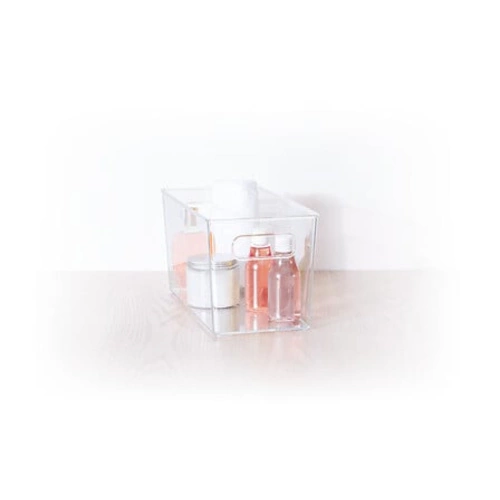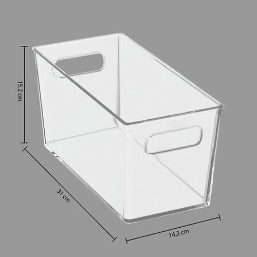 Transparentny pojemnik Selena o wymiarach 15x31 cm to doskonały organizer, który świetnie sprawdzi się w małych przestrzeniach, takich jak łazienka czy toaletka.