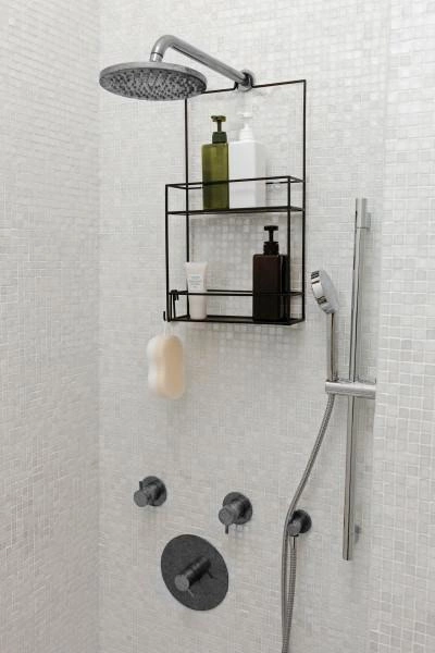 Półka CUBIKO składa się z dwóch dużych półek, uniwersalnego haczyka do zawieszenia nad prysznicem lub przypięcia do drzwi prysznica, przyssawek zapewniających dodatkową stabilność oraz haczyków w kształcie litery S do spersonalizowanego przechowywania. Każda półka ma wbudowane małe otwory drenażowe, dzięki czemu Twoje produkty pozostaną suche i szybko wysychają. Każda półka posiada dwa większe otwory, które umożliwiają przechowywanie butelek do góry nogami, aby produkt można było łatwiej dozować. Haczyk służący do zawieszenia CUBIKO na górze można wykorzystać do zawieszenia półki na głowicy prysznicowej lub do zaczepienia na drzwiach prysznica. Druga strona klipsa działa jak haczyk na ręcznik, zapewniając dodatkową funkcjonalność po przypięciu półki do drzwi prysznica.
