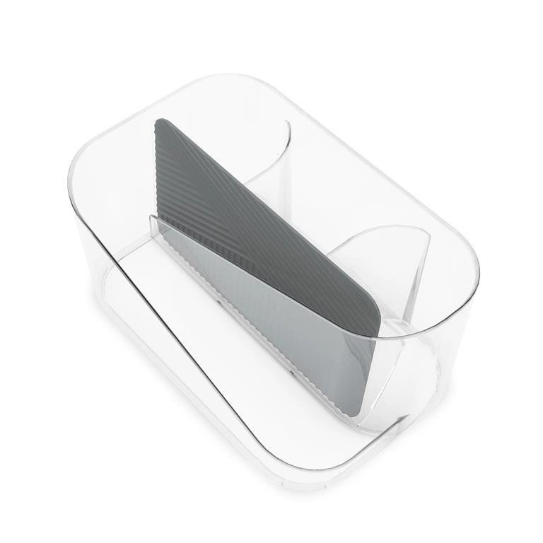 Organizer na kosmetyki Glam II marki Umbra to nowoczesny pojemnik z transparentnego tworzywa, idealny do uporządkowania kosmetyków w szufladzie lub na blacie. Dzięki przemyślanej konstrukcji z licznymi przegródkami o szerokości 27 cm, organizer pozwala wygodnie rozdzielić akcesoria do makijażu i pielęgnacji. Geometryczna forma i przejrzysty materiał sprawiają, że wszystkie produkty są doskonale widoczne i zawsze pod ręką.