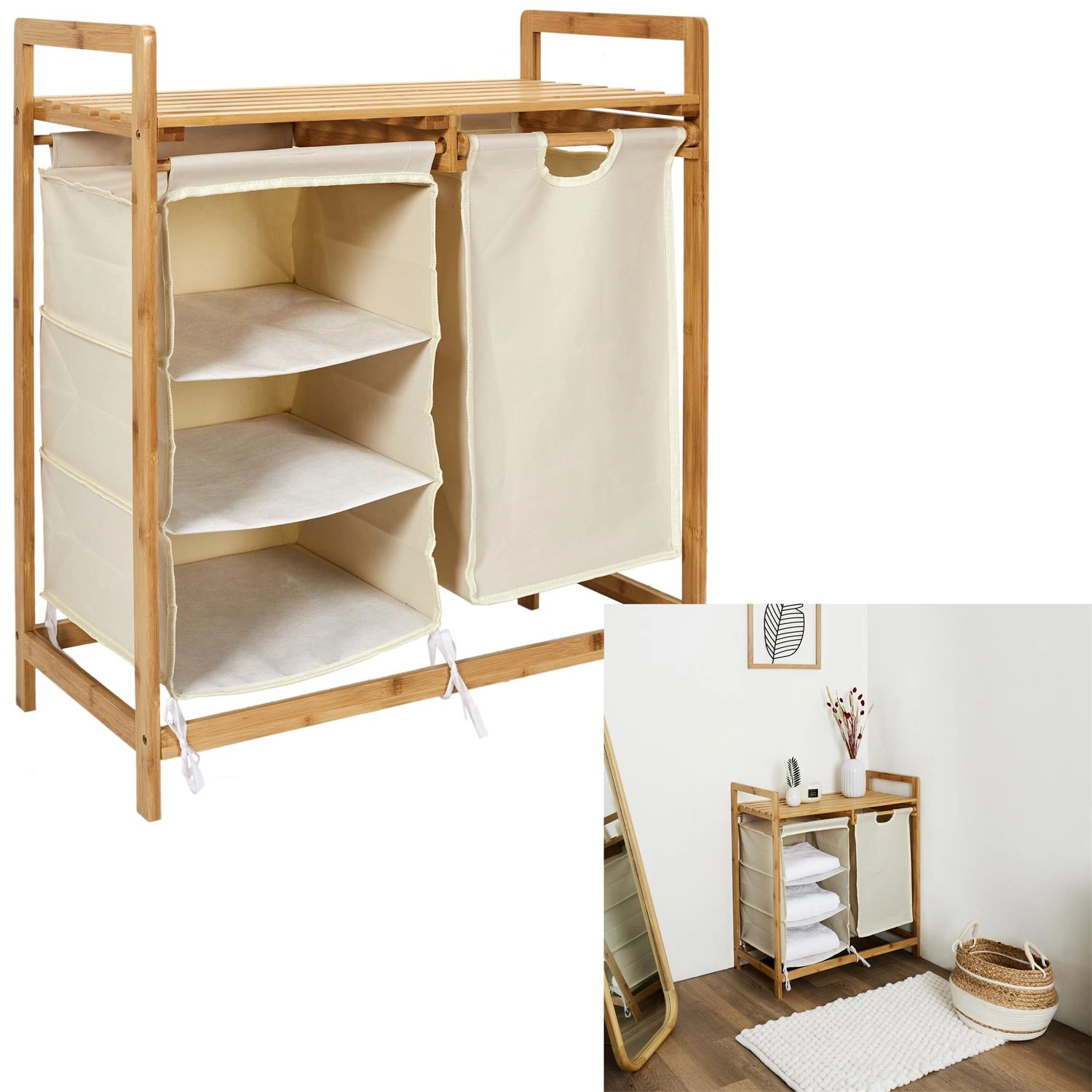Szafka łazienkowa stojąca Intesi z bambusa to połączenie nowoczesnego designu, funkcjonalności oraz naturalnych materiałów. Jej szerokość 69,5 cm i wysokość 77 cm sprawiają, że doskonale sprawdzi się jako praktyczna szafka do łazienki, oferując przestrzeń do przechowywania w postaci trzech wygodnych półek oraz pojemnej szuflady z bawełny. Beżowa kolorystyka i bambusowa konstrukcja nadają wnętrzu ciepły, skandynawski charakter, a lekka forma świetnie wpisuje się w aktualne trendy aranżacyjne.