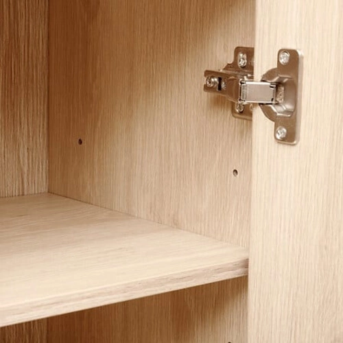 - Naturalny wygląd – melamina imitująca dąb dodaje wnętrzu ciepła.