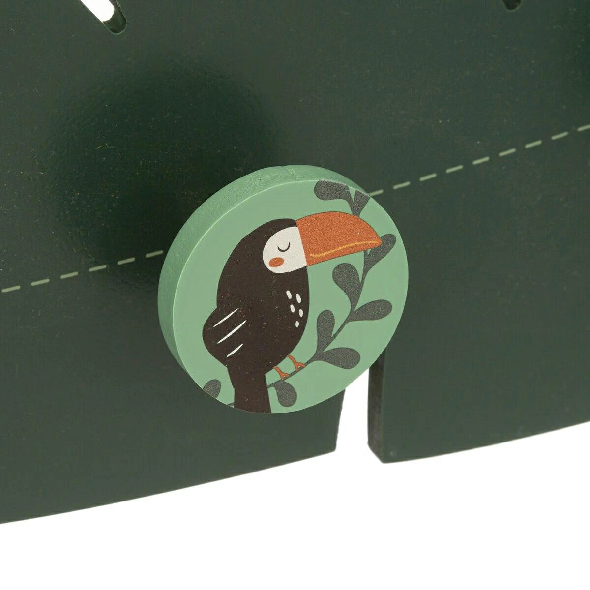 - Trzy gałki ozdobione zwierzętami z dżungli, służące do zawieszania ubrań dziecka.