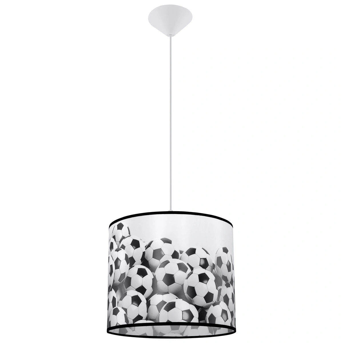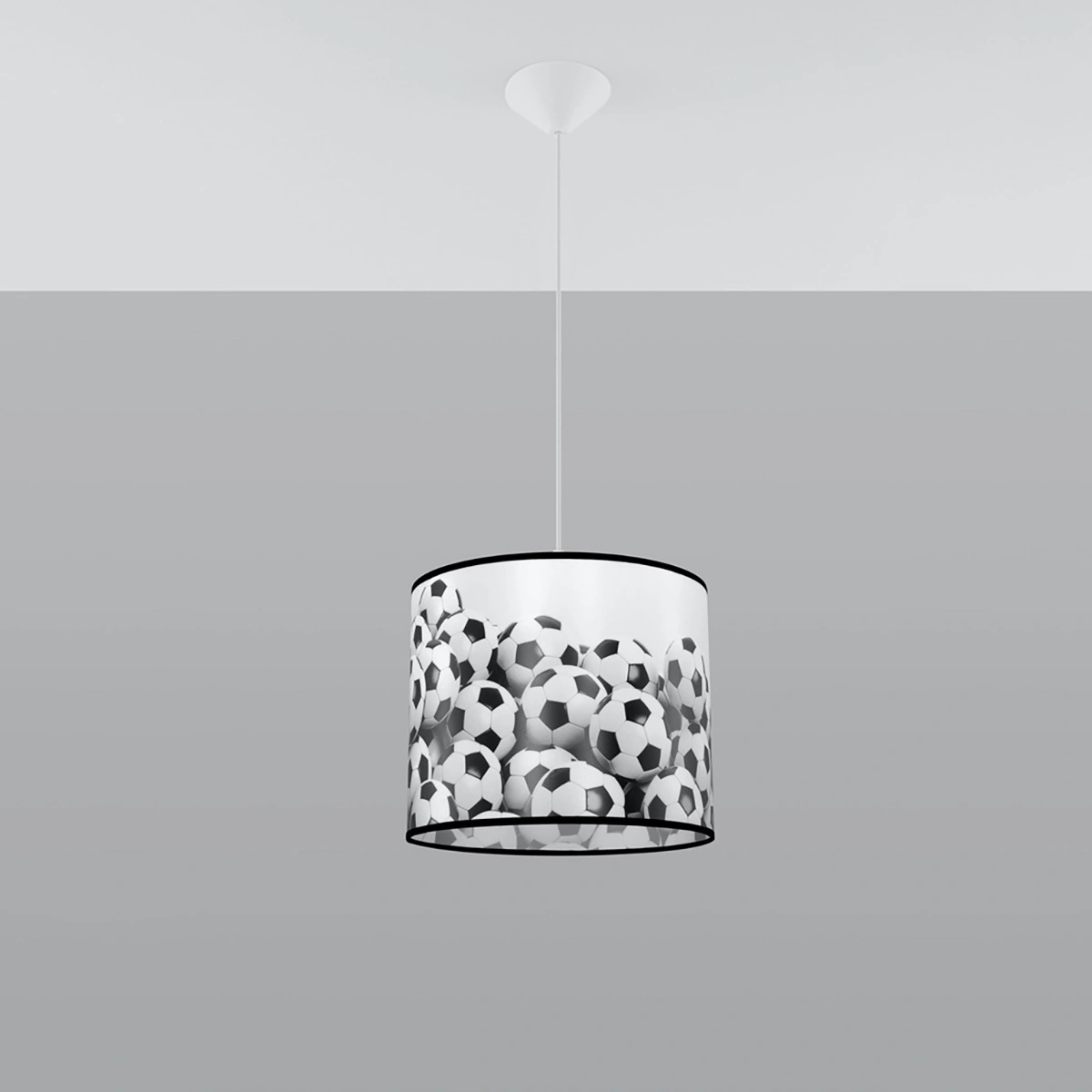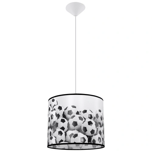 Lampa wisząca kula FOOTBALL B 30 to wymarzony element wystroju dla każdego miłośnika futbolu. Piłkarski motyw w klasycznych biało-czarnych barwach natychmiast przyciąga uwagę i nadaje wnętrzu sportowego charakteru, tworząc atmosferę sprzyjającą kreatywnej zabawie oraz codziennej nauce. Dzięki przemyślanej konstrukcji lampa doskonale sprawdzi się zarówno w pokoju dziecięcym, jak i młodzieżowym, stanowiąc praktyczne i dekoracyjne oświetlenie sufitu.