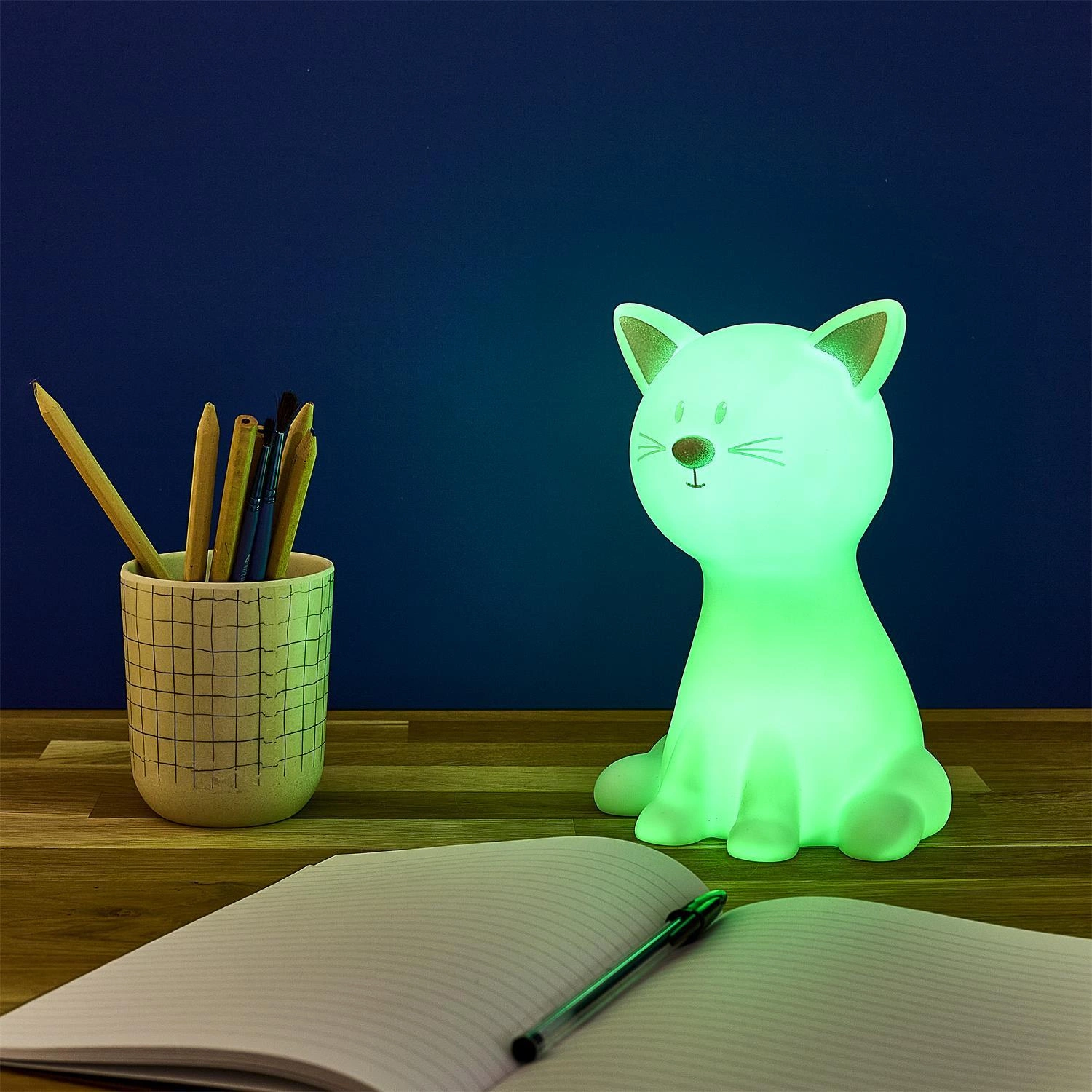 - Dzięki możliwości wyboru koloru oświetlenia, lampka Cat Night daje możliwość dostosowania atmosfery do aktualnego nastroju i aranżacji pokoju.