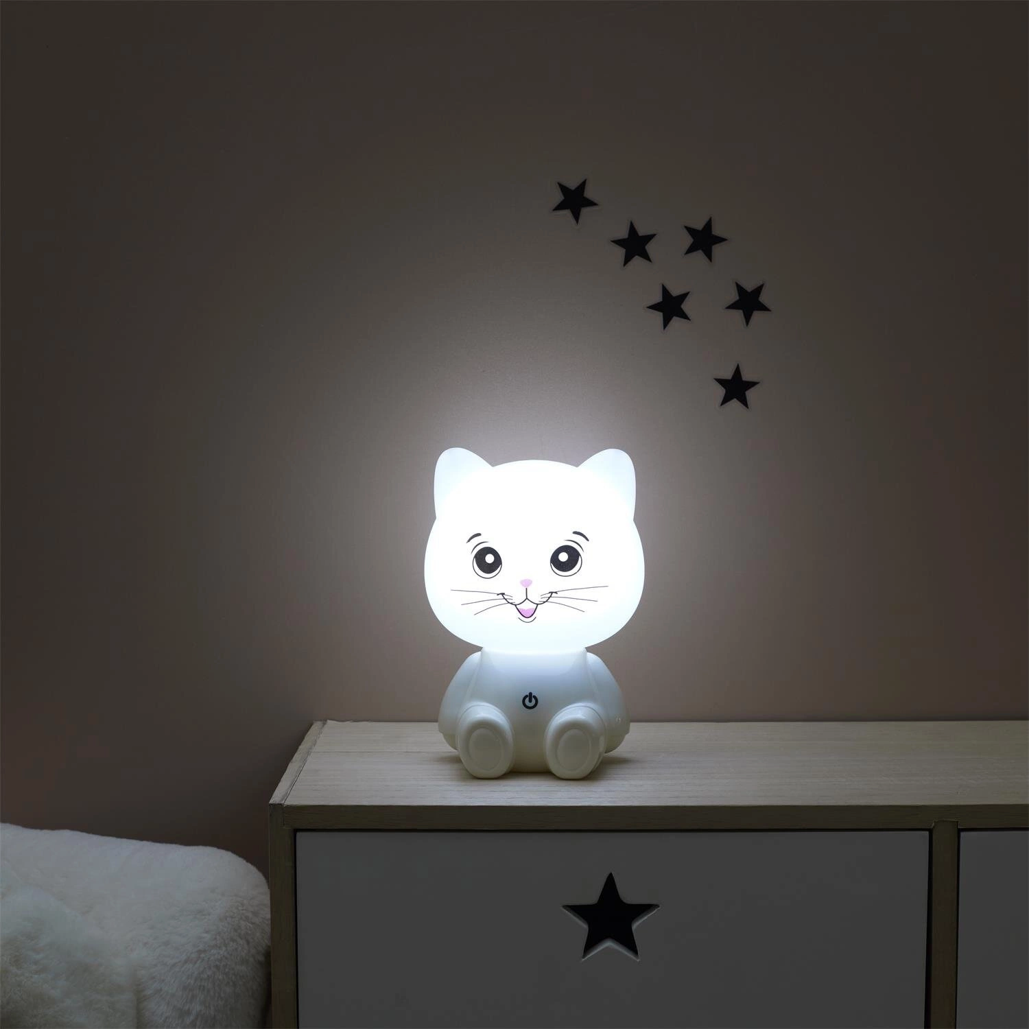 - Lampka nocna Kot USB LED biała to uroczy i praktyczny dodatek do sypialni lub pokoju dziecięcego.