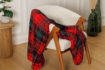 Narzuta na łóżko Brody czerwona krata klasyczna, dekoracyjna, przyjemna w dotyku 130x170 cm Atmosphera