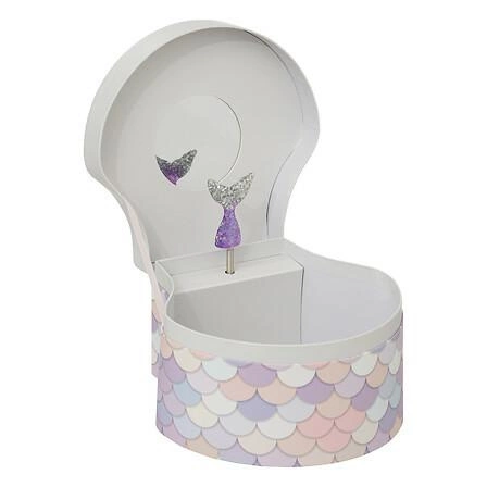 Przygotuj swoje dziecko do spokojnego snu za pomocą pozytywki muzycznej Syrenka. Ta urocza syrena zagra delikatne melodie, które pomogą maluchowi zasnąć. Wystarczy pociągnąć za klapkę z tyłu i podnieść pokrywę, aby cieszyć się muzyką. Dodatkowo, ogon syreny wewnątrz pozytywki zaczyna się obracać, tworząc piękny, błyszczący spektakl. Pozytywka muzyczna Syrenka jest nie tylko doskonałym narzędziem do usypiania, ale również praktycznym miejscem do przechowywania małych skarbów i biżuterii dziecka.
